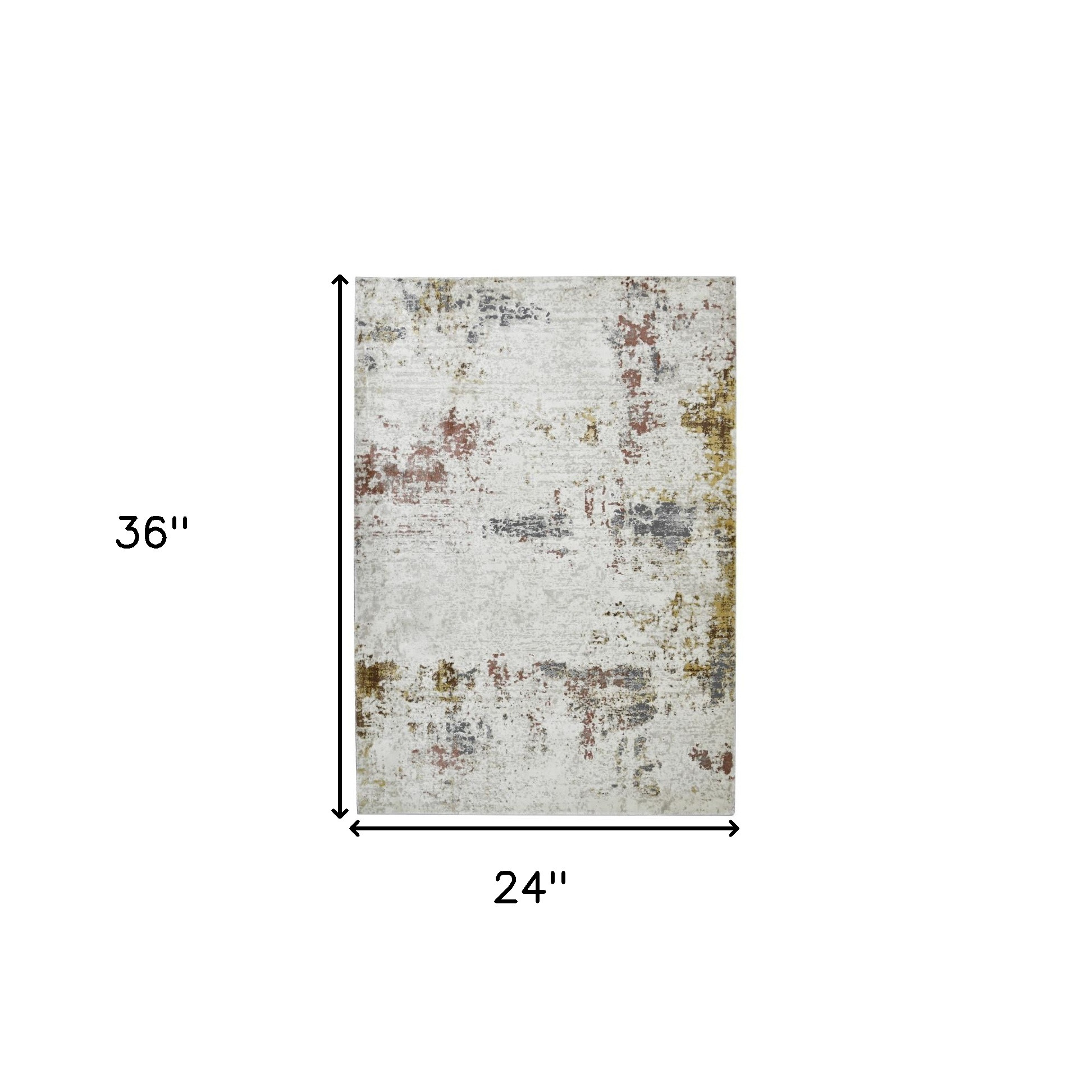 2′ x 3′ Red and Ivory Abstract Power Loom Area Rug