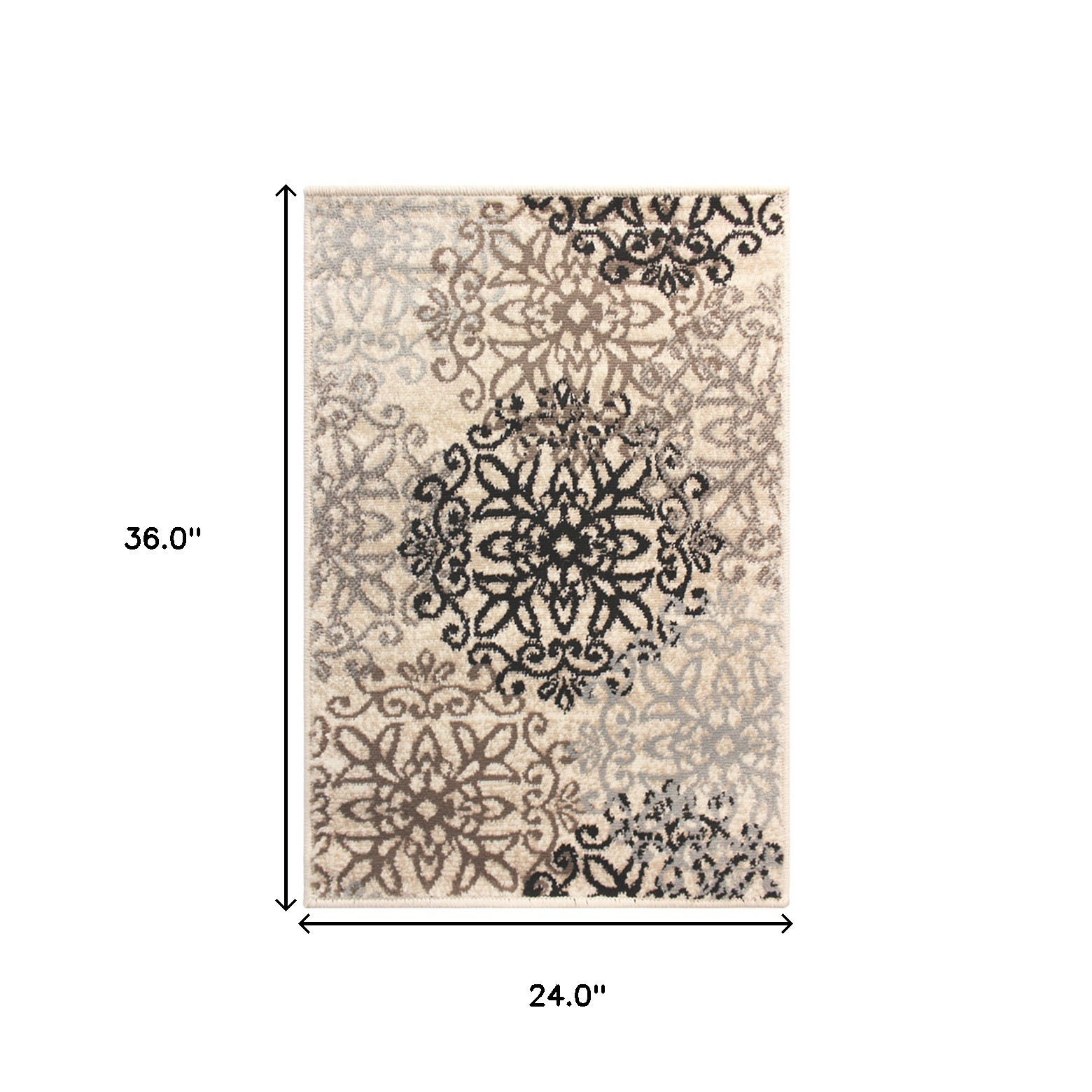 2′ X 3′ Tan Gray And Black Floral Medallion Stain Resistant Area Rug