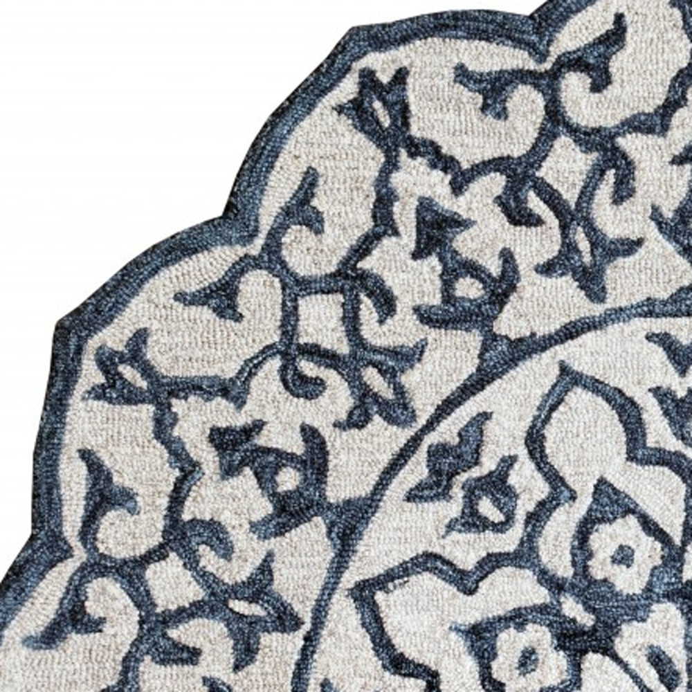 Flaunting the on-trend hues in uniquely traditional patterns, this Navy and White Decorative Hearth Rug will add up to a beautiful accent in front of the fireplace. The serene white base is uplifted by the intricate designs and border in navy blue to accentuate a modern vibe with a traditional punch. Made to stand up to fire sparks and protect the floors against any fire hazards, this rug is constructed with 100% premium wool for enhanced durability and longevity while the cotton backing makes it stay put on the ground with ease. The low pile construction adds to the surface interest providing a luxurious underfoot. Besides being an ideal piece for fireplace areas, you can place this rug in any part of your home for an artistic touch on the floor. 27” x 46” x 0.5”
