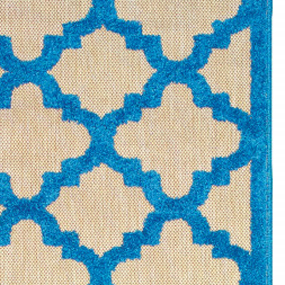 Set an inviting tone in your space with this 2-foot x 8-foot blue and beige geometric stain resistant indoor outdoor area rug. This rectangle shaped rug features a geometric design in blue and beige to give it visual interest. A classic shape marries with good looking design for your space Ideal for spaces with kids and pets, this rug is stain resistant to help repel stains and spilled liquids. Area Rugs help to give warmth and sense of home to your space. 0.07-inch H x 26.77-inch W x 90.55-inch D