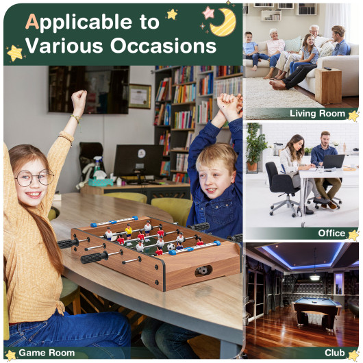 - Easy to Carry & Assemble: This mini foosball tabletop is suitable for all kinds of occasions such as home office birthday party family game night etc. According to the detailed installation instructions the foosball table with complete parts can be assembled in a short time.