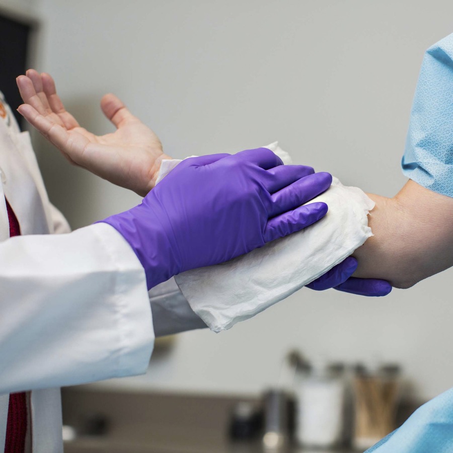 | Marketing Information | <p>These purple nitrile gloves guard against incidental splashes, are made of a highly durable nitrile polymer, are powder-free, and not made with natural rubber latex. The XTRA-length gloves are a generous 12" long, are ambidextrous and have a beaded cuff for easy donning. Your workers will enjoy excellent dexterity and tactile sensitivity, thanks to the textured fingertips. They are even cleared for use in chemotherapy. Enhanced tensile strength prevents tearing during use for better protection. Textured fingertips improve your grip to easily handle smaller items. Smartpull box opening prevents wasteful use by reducing the chance of getting more than one glove at a time. Size-small gloves are cleared for use in chemotherapy and meet NFPA standards 1999:2008.</p> |