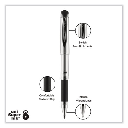 Make an impact with 207 IMPACT Gel Stick Pens from uni-ball featuring a 1.0 mm bold point with a stainless steel tip that resists bending and breaking. Even-flowing, pigment-based gel ink renders an outstanding ink laydown for a smooth writing experience and strikingly bold lines. Use these capped stick gel pens for everyday writing tasks, check signing and all of your important signatures, trusting its quick-drying uni Super Ink. Exclusive uni Super Ink technology entrenches the gel ink deep into the paper, preventing document alteration, water damage or fading. The 1.0 mm point delivers bold writing with a silky finish. A soft rubber grip helps you continue writing without fatigue while maintaining precision and detail throughout your tasks. Lend a vivid touch to your writing with these sophisticated gel stick pens that glide smoothly for distinct and neat writing.