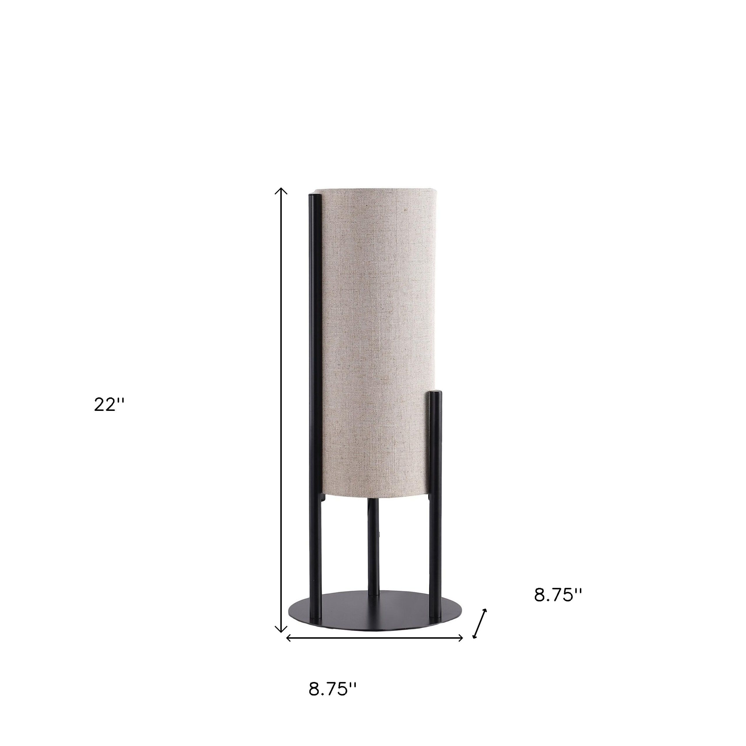 22″ Black Metal Bedside Lamp With Beige Cylinder Shade
