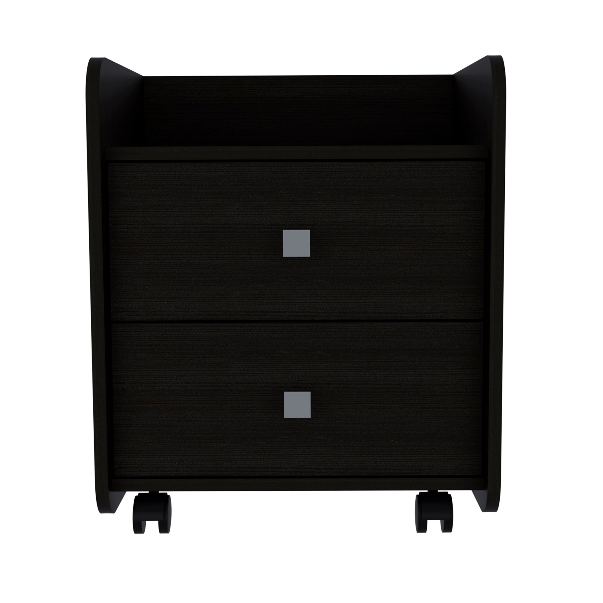 Good looking design and practical styling meet to form this 22-inch black two drawer faux wood nightstand. Sturdy and durable construction from manufactured wood ensures this trusty bedside table is built to last. Includes 2 drawers to give you multiple storage options to keep clutter at bay. The unsung hero of the bedroom, this nightstand is perfect for keeping a glass of water, lamp, alarm clock, jewelry, and more, close by and easily accessible. Look no further than this nightstand to accommodate all your needs and upgrade the style of your bedroom. 21.88-inch H x 18.22-inch W x 15.74-inch D