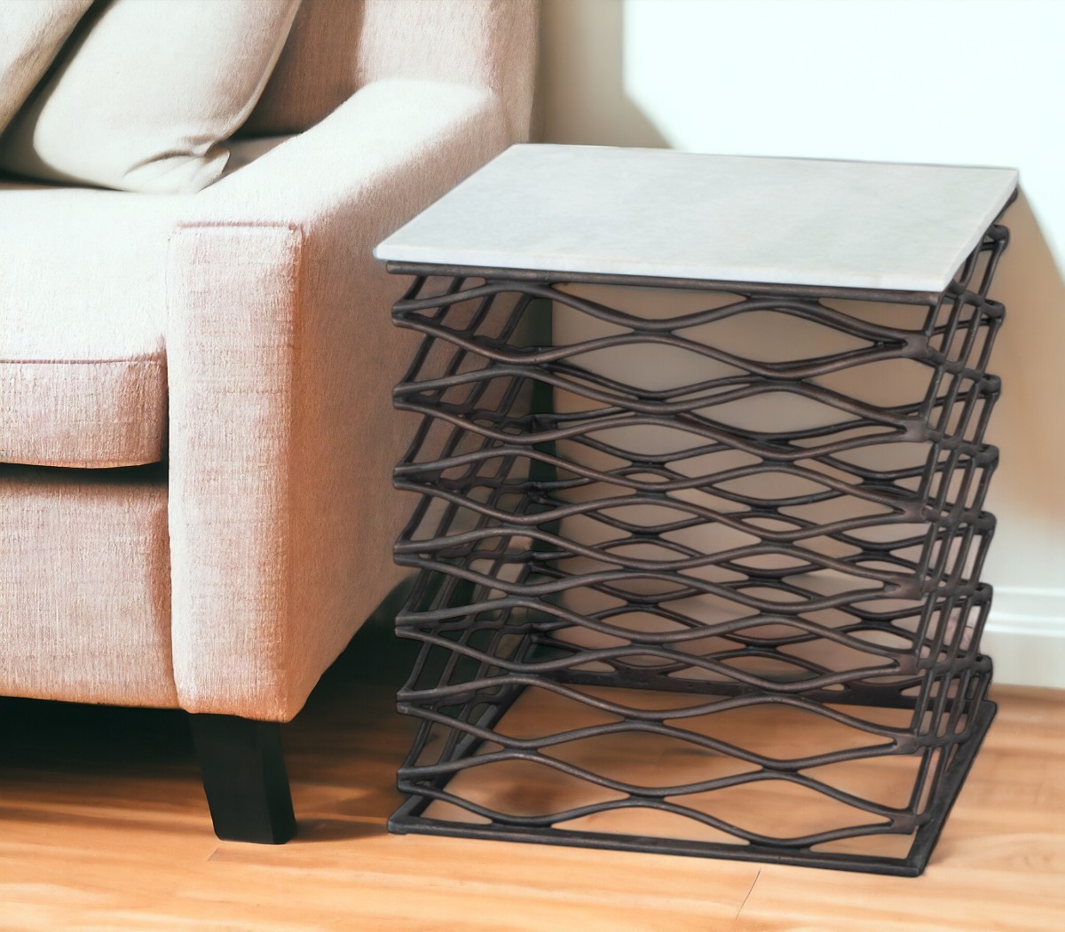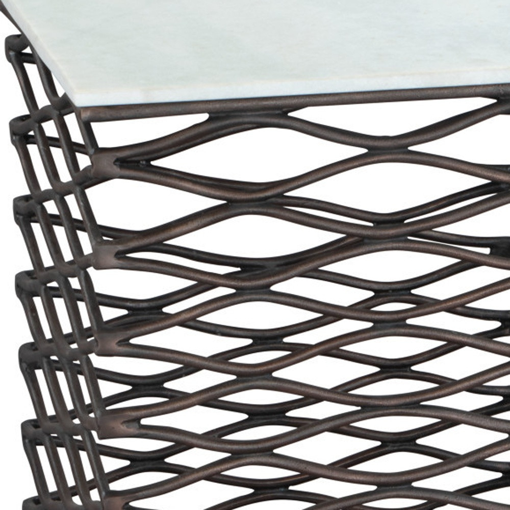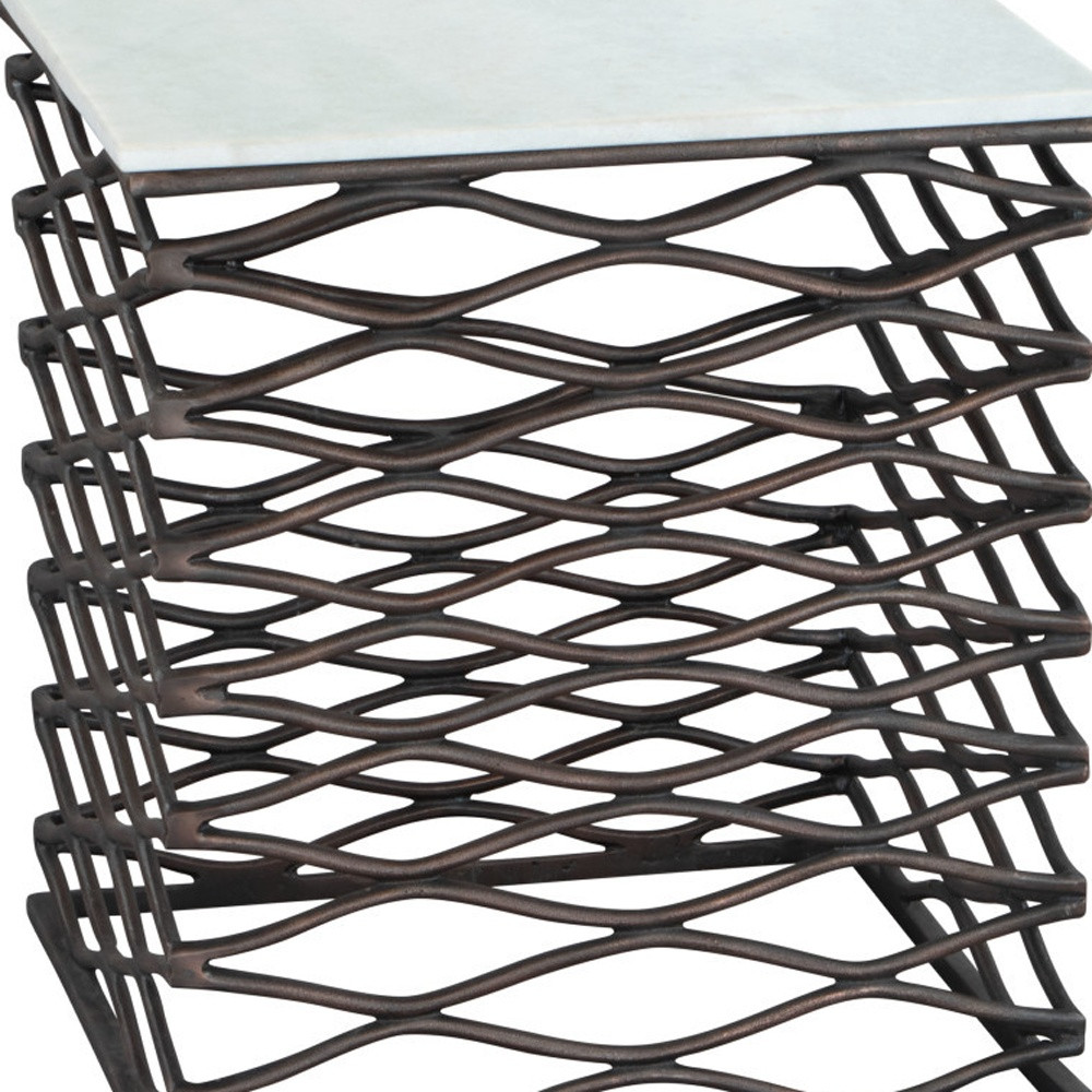 Show off your exquisite taste with this 22-inch white and bronze marble and aluminum square frame end table. The base of this table is made from aluminum in a bronze color that is a nice contrast to the white marble tabletop. Side tables are a great way to flank your sofa, use as an accent next to your favorite chair, or can even be used bedside. You can match it with other pieces to get the ideal look for your place. 22-inch h x 21-inch w x 21-inch d.