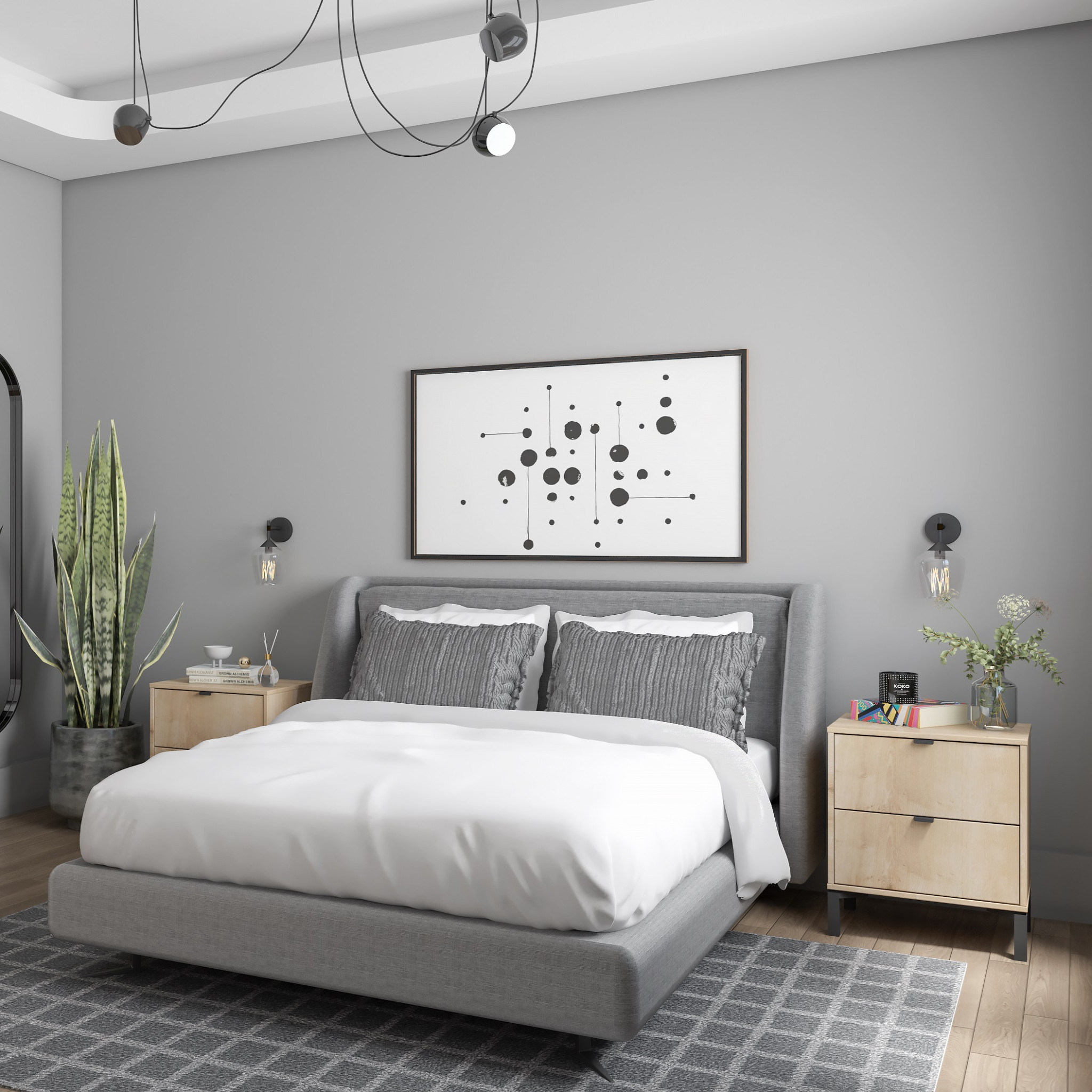 Our 24-inch oak two drawer faux wood nightstand will compliment your bed beautifully. Robust in design, the bed side table has been expertly crafted from manufactured wood. The piece has 2 drawers to store your bedtime essentials close to you as you rest. The design includes black plastic legs to give stability and finish off the look. The unsung hero of the bedroom, this nightstand is perfect for keeping a glass of water, lamp, alarm clock, jewelry, and more, close by and easily accessible. Look no further than this nightstand to accommodate all your needs and upgrade the style of your bedroom. 24-inch H x 20-inch W x 16-inch D