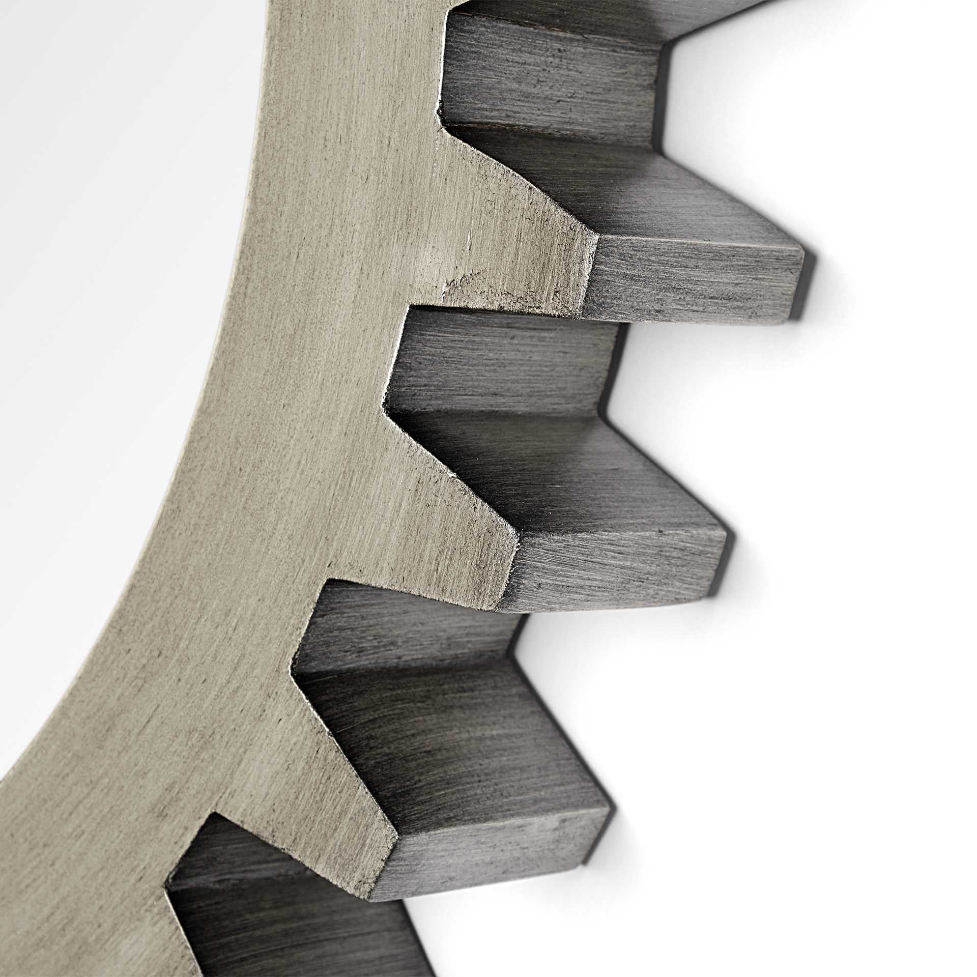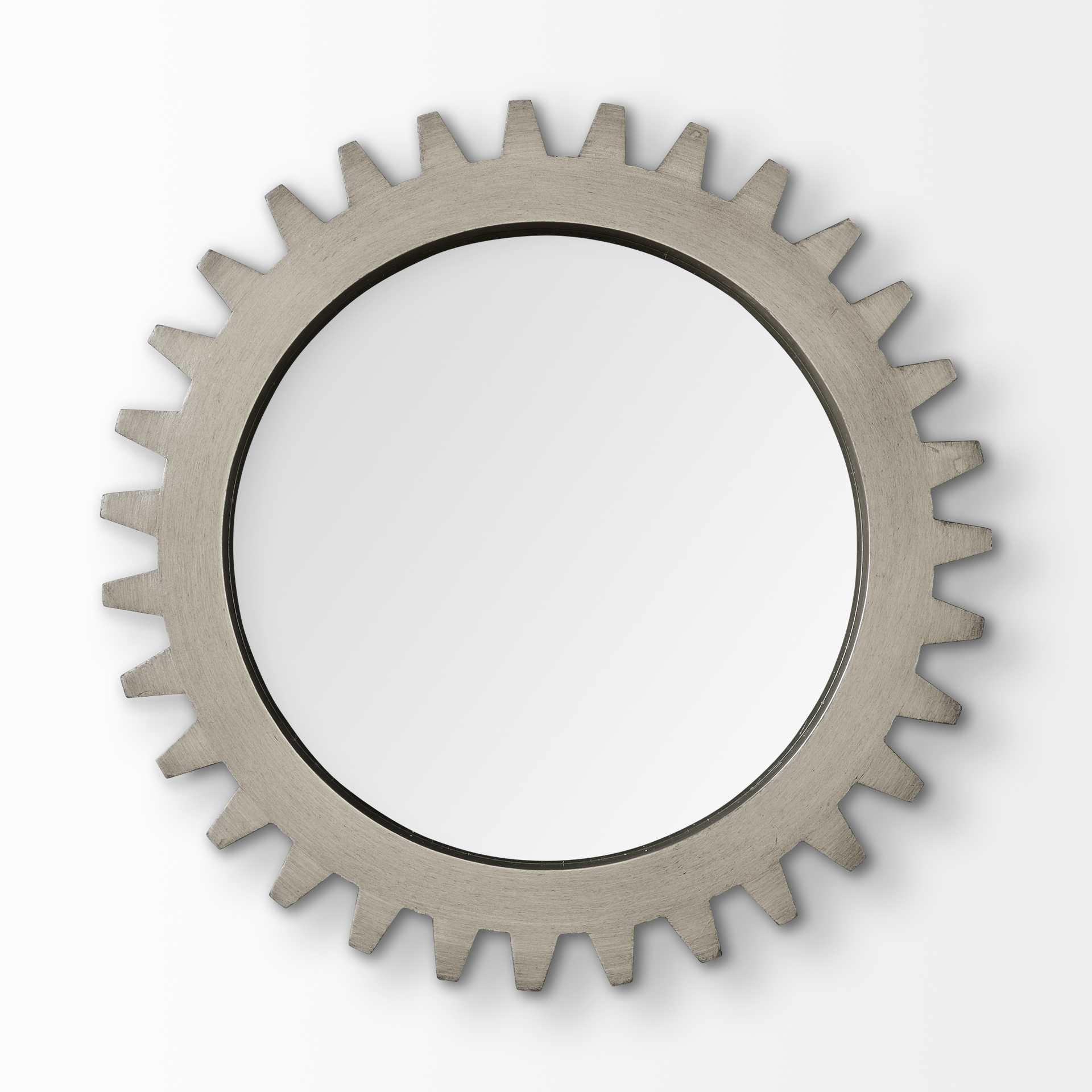 Add a touch of sunshine to any space in your home with this 26-inch gray abstract wood framed accent mirror. The inlaid frame crafted of wood and finished with silver hue, creating an elegant appeal. Framed with wood, this mirror will bring practical style and fashionable design to your space. Its industrial style makes this mirror a favorite for bringing some flair to your decor. This mirror will be a great useful addition to your home but will also help elevate the space in the room. 26-inch h x 26-inch w x 4-inch d