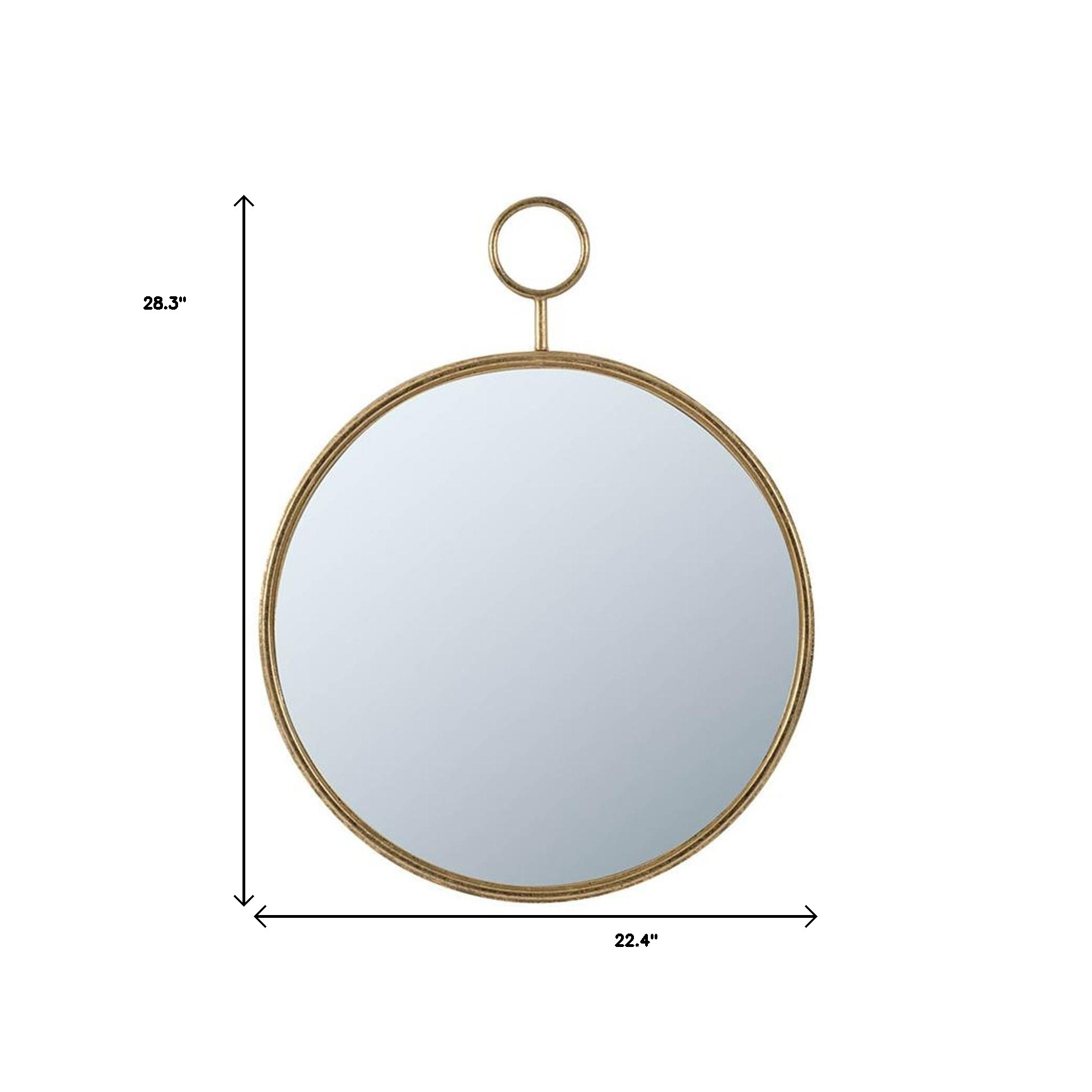 A delectable piece of furniture, this gold round framed accent mirror is an embellishment perfect for your rooms. This mirror has a round shape providing the most magnificent reflections of light and color. This frame works nicely with the full-bodied mirror in the middle. It is the perfect wall decor to keep up all year round. This mirror will not only be a great practical addition to any location of your home but will also help elevate the space in the room. 28.3-inch H x 22.4-inch W x 1.8-inch D