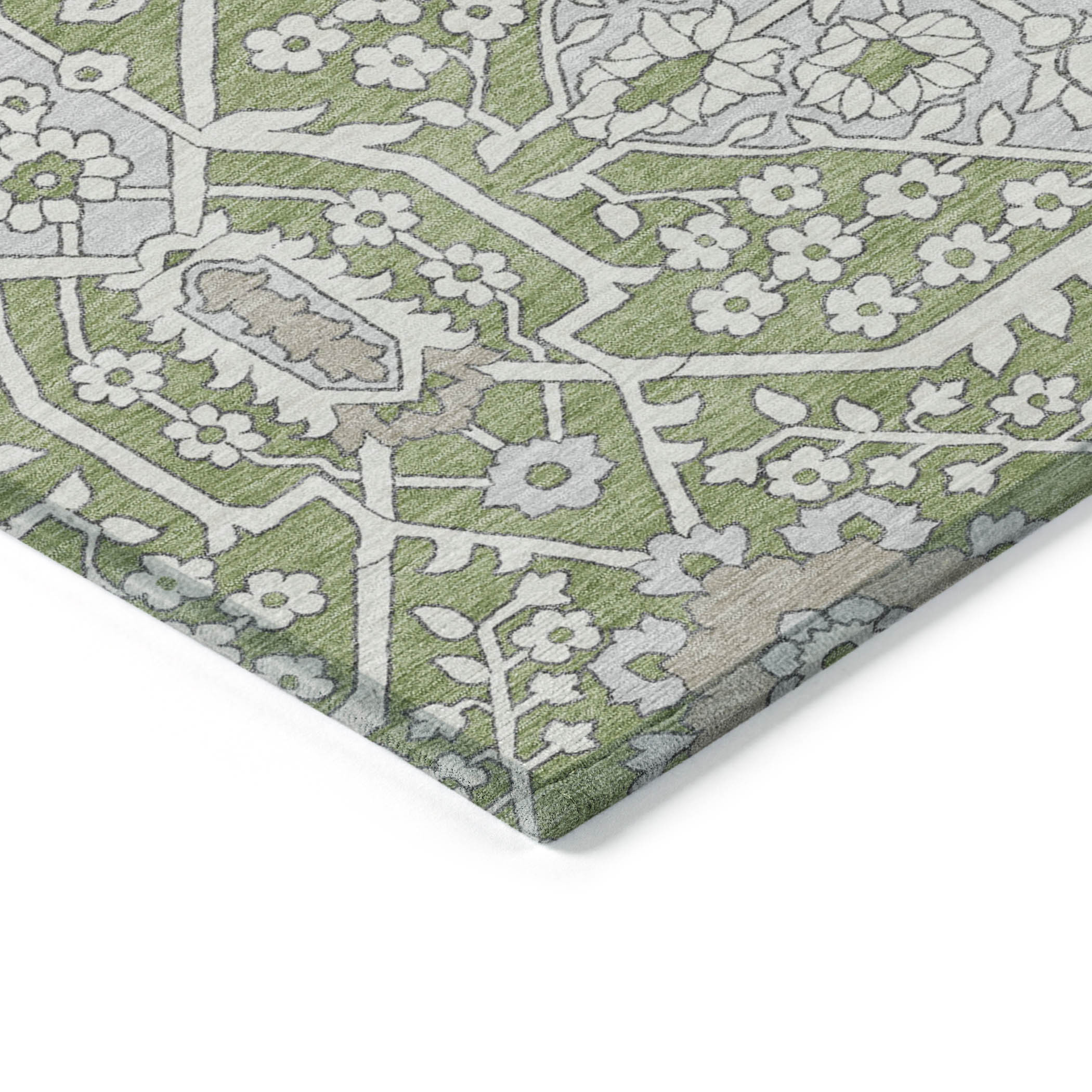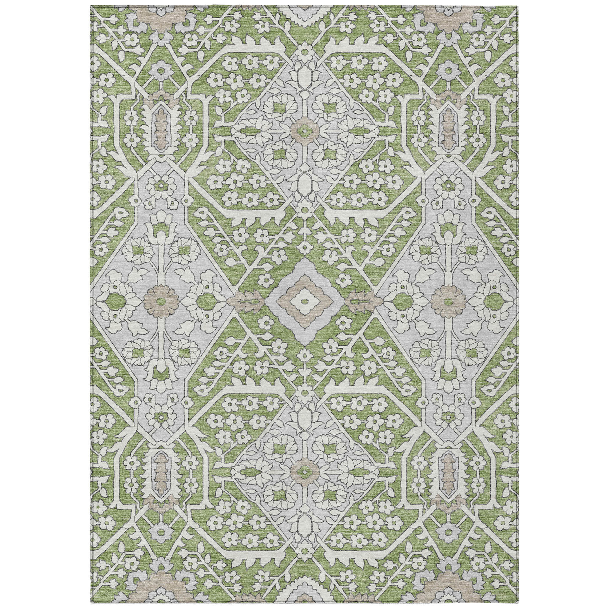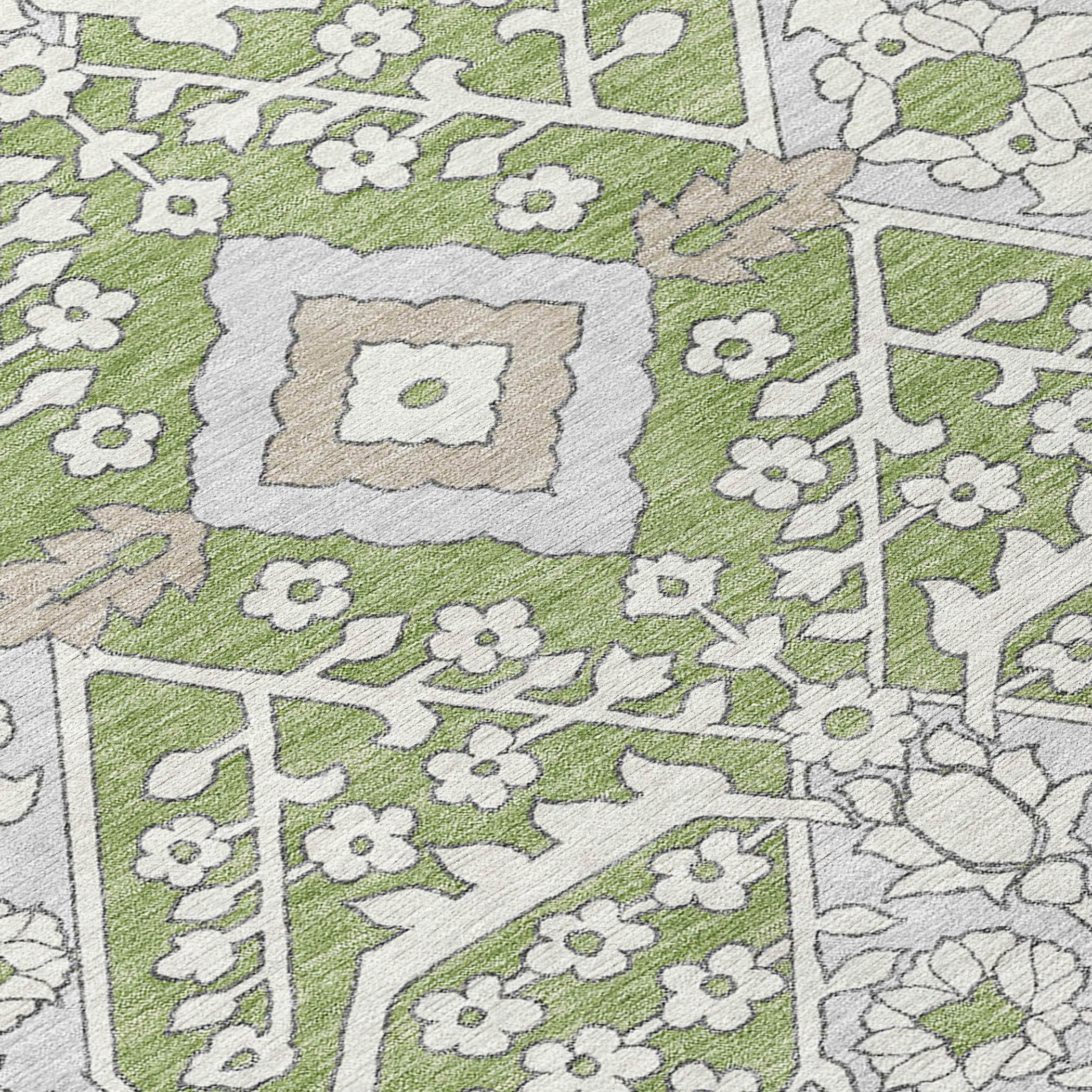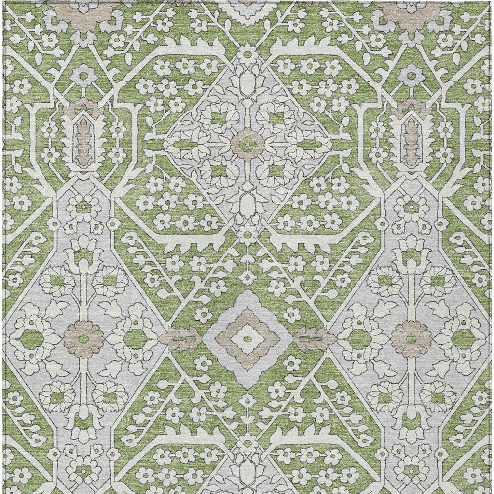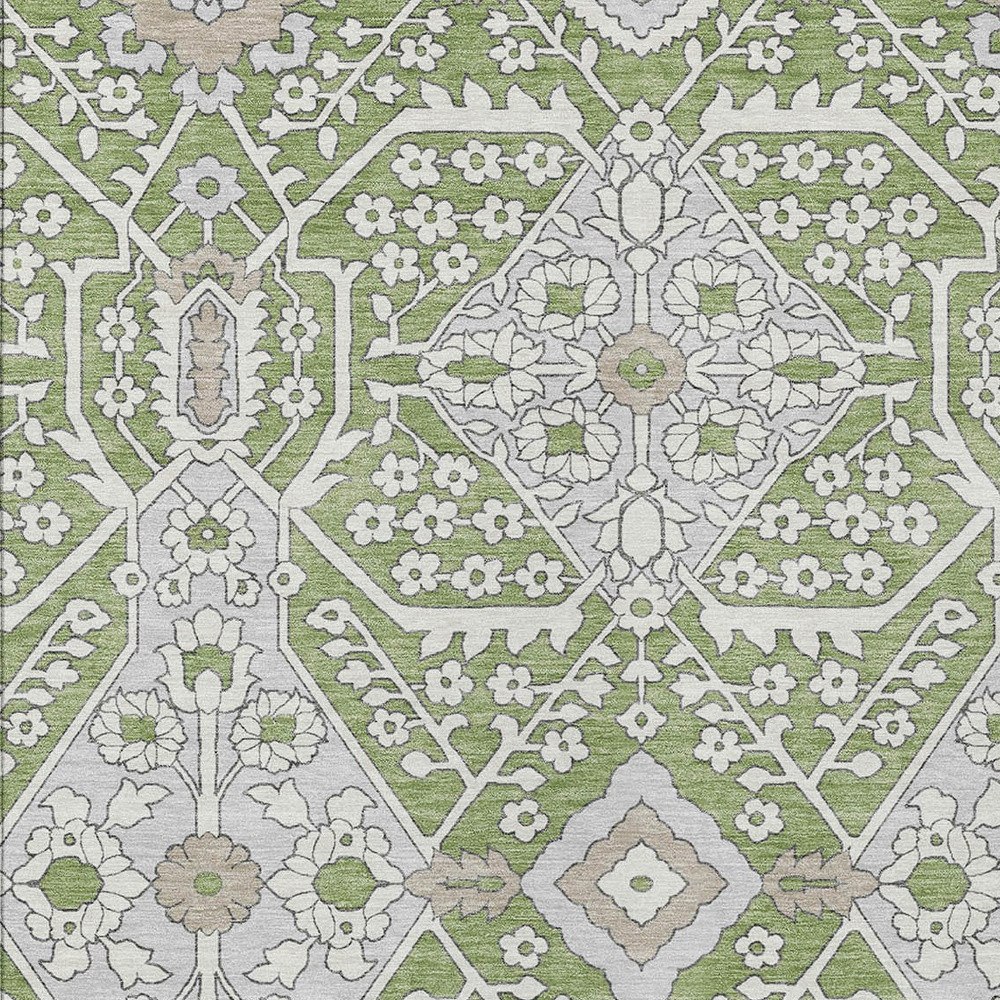 3′ X 5′ Artichoke Green Ivory And Gray Floral Washable Indoor Outdoor Area Rug