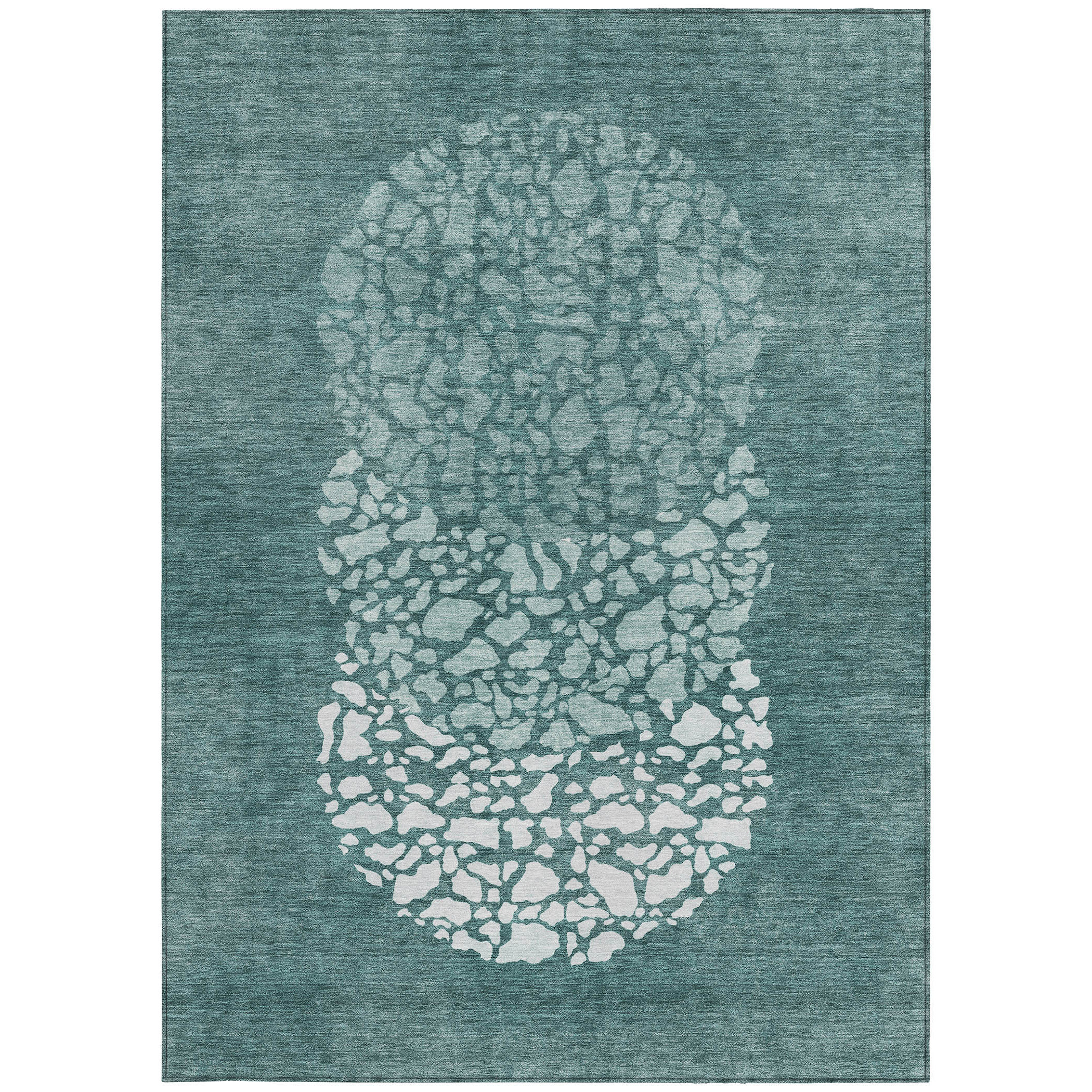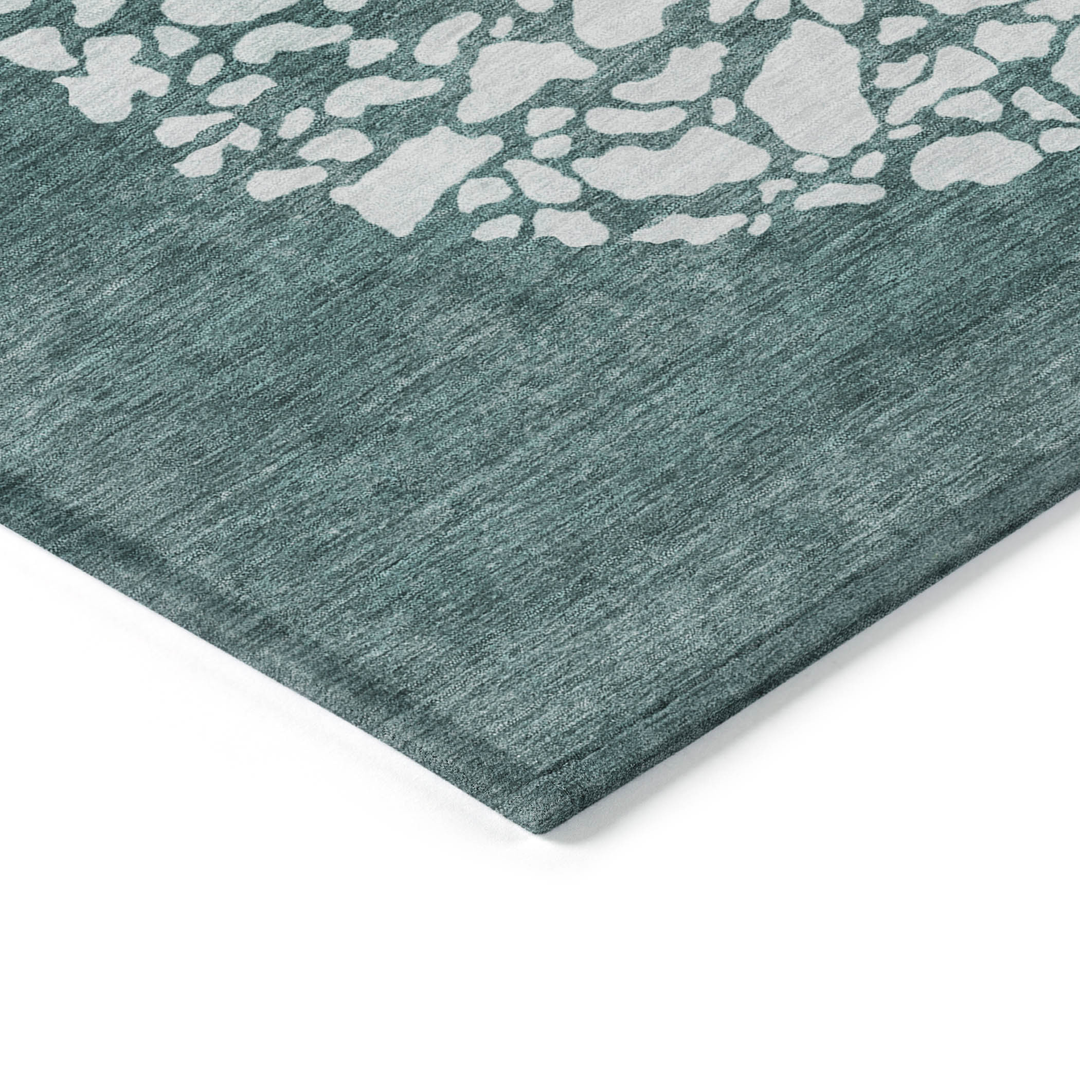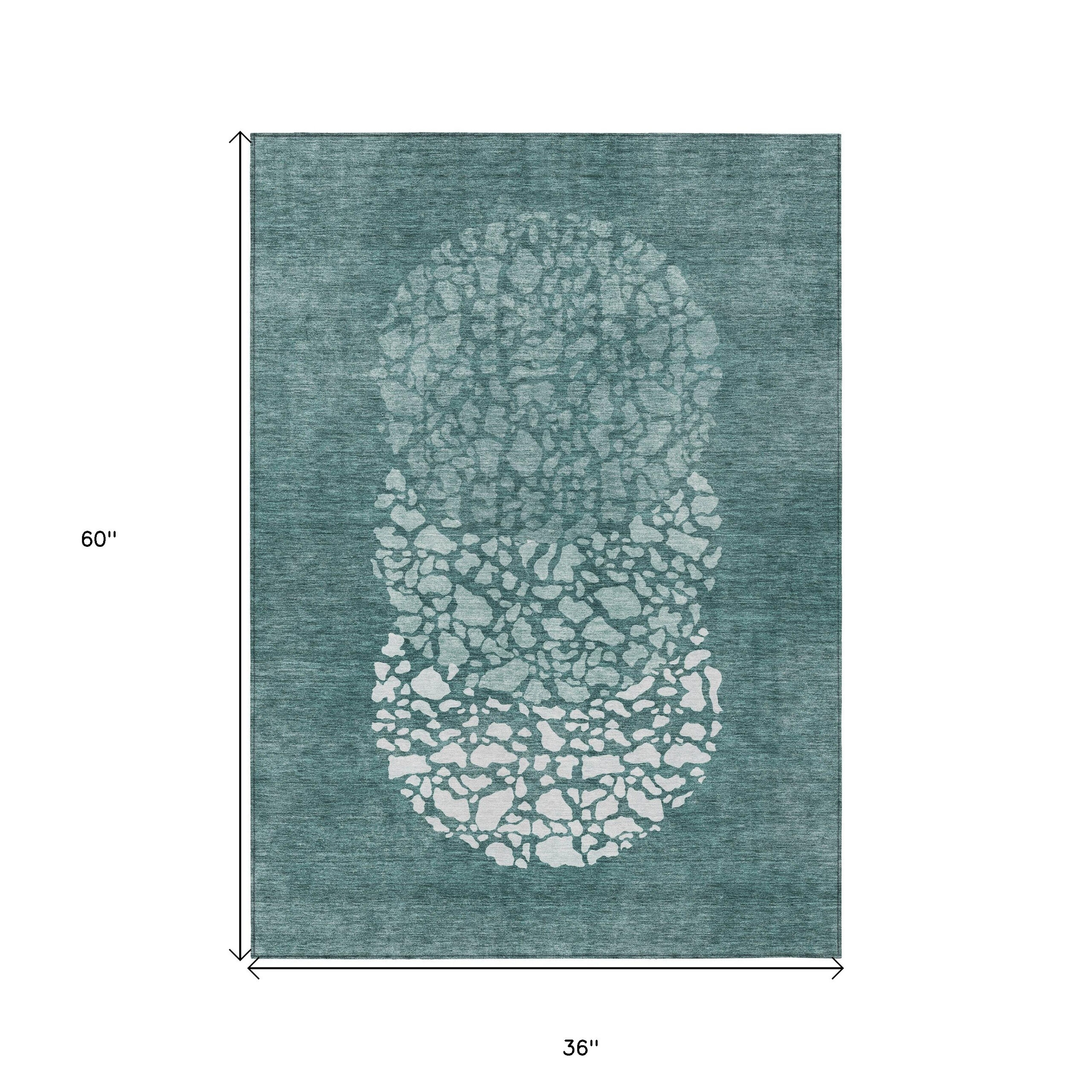3′ X 5′ Dark Green Aqua And Ivory Abstract Washable Indoor Outdoor Area Rug