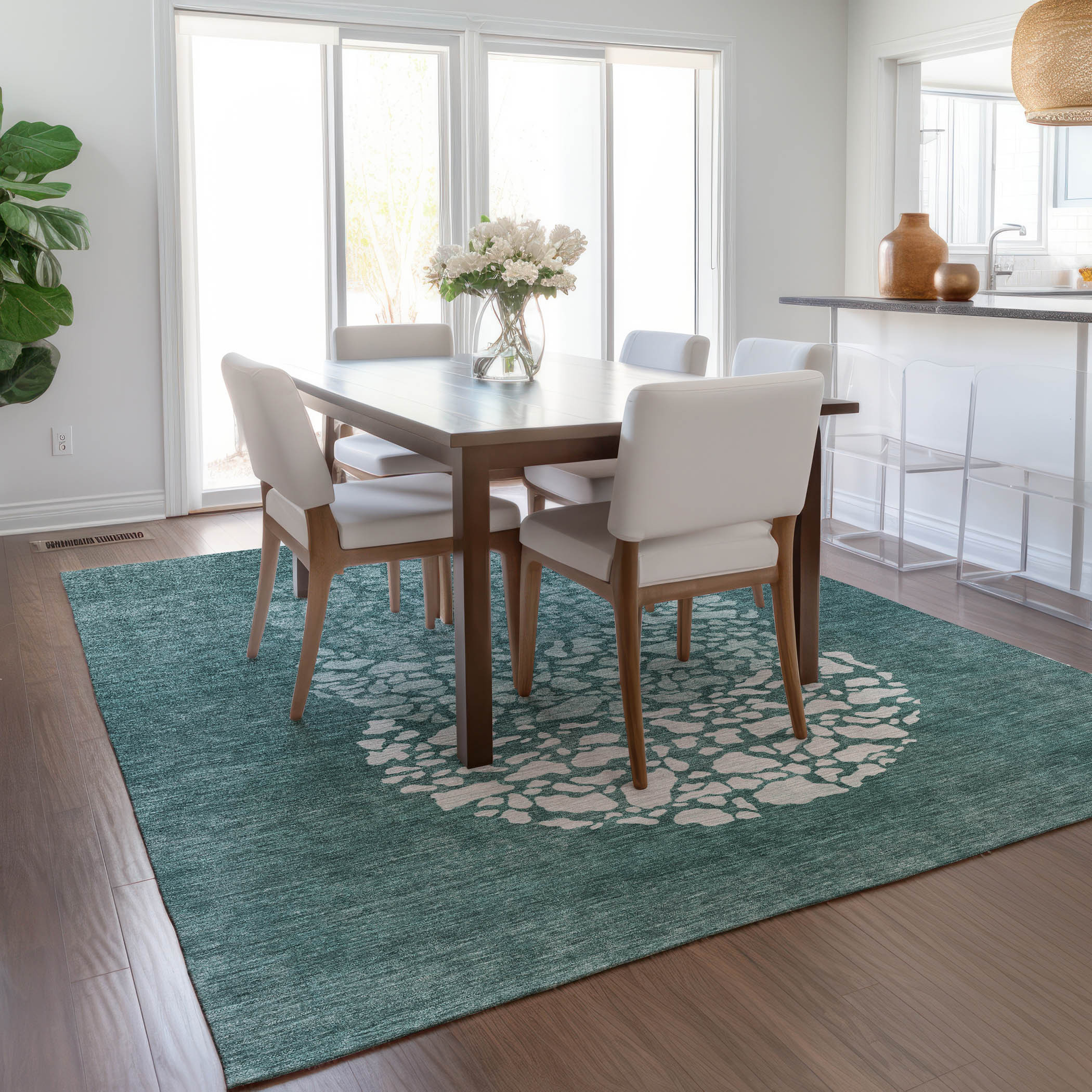 This 3-foot x 5-foot dark green aqua and ivory abstract washable indoor outdoor area rug, is a great way to add warmth to a room. This rectangle shaped rug features a abstract design that will work well both indoors or out. A classic shape marries with good looking design for your living room, hall, bedroom, porch, patio, or poolside. Ideal for outdoor spaces or high traffic areas with kids and pets, this rug is made from heavy duty polyester that is stain resistant to help repel water, dirt, and stains. Versatile in use, durable, and easy to maintain, this rug is an ideal solution to add a decorative and inviting touch to your indoor or outdoor space. 36-inch h x 60-inch w x 0.19-inch d.