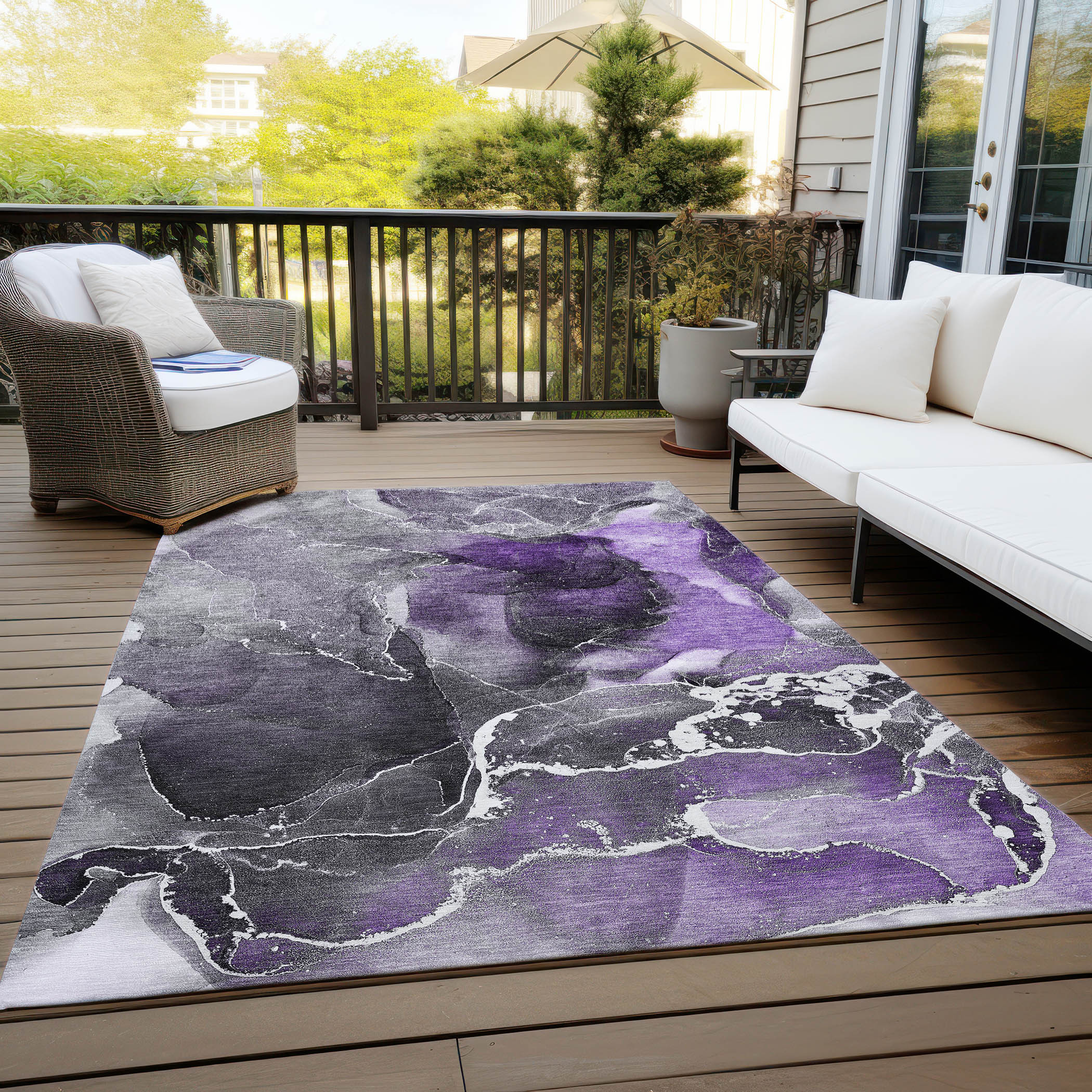 3′ X 5′ Gray and Purple Abstract Washable Non Skid Indoor Outdoor Area Rug