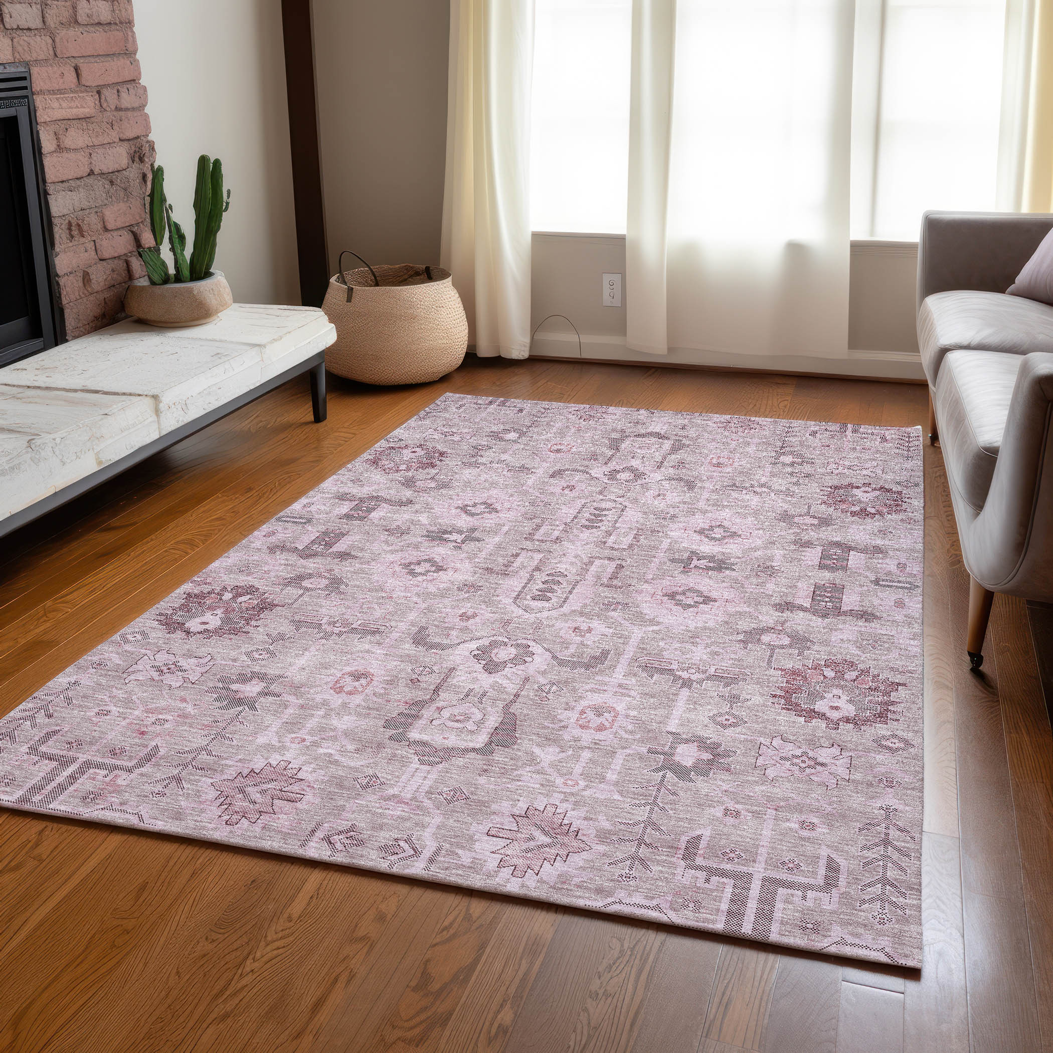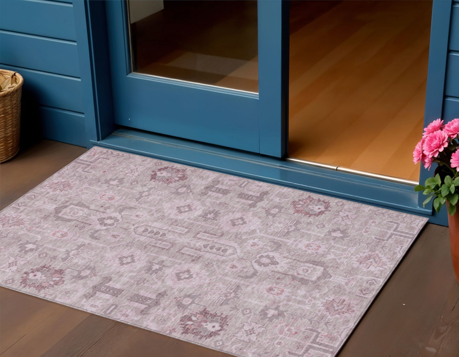 3′ X 5′ Pink Mauve And Blush Oriental Washable Indoor Outdoor Area Rug