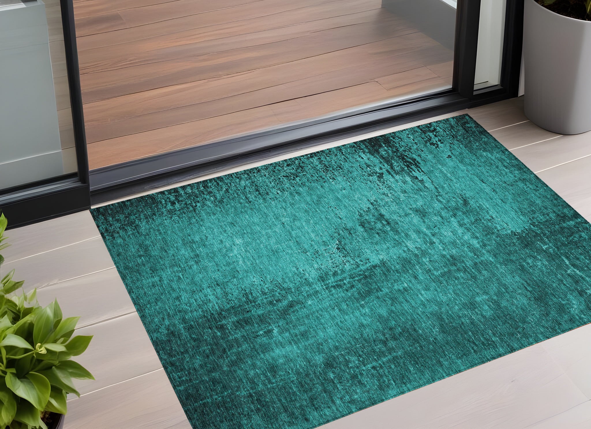 Set an inviting tone in your space with this 3-foot x 5-foot teal abstract washable stain resistant non skid indoor outdoor area rug. This rectangle shaped rug features a abstract design in teal to give it visual interest. A classic shape marries with good looking design for your space ideal for spaces with kids and pets, this rug is stain resistant to help repel stains and spilled liquids. Place this area rug against a hardwood or tile floor and it will enliven your living space with style and sophistication. 36-inch H x 60-inch W x 0.19-inch D