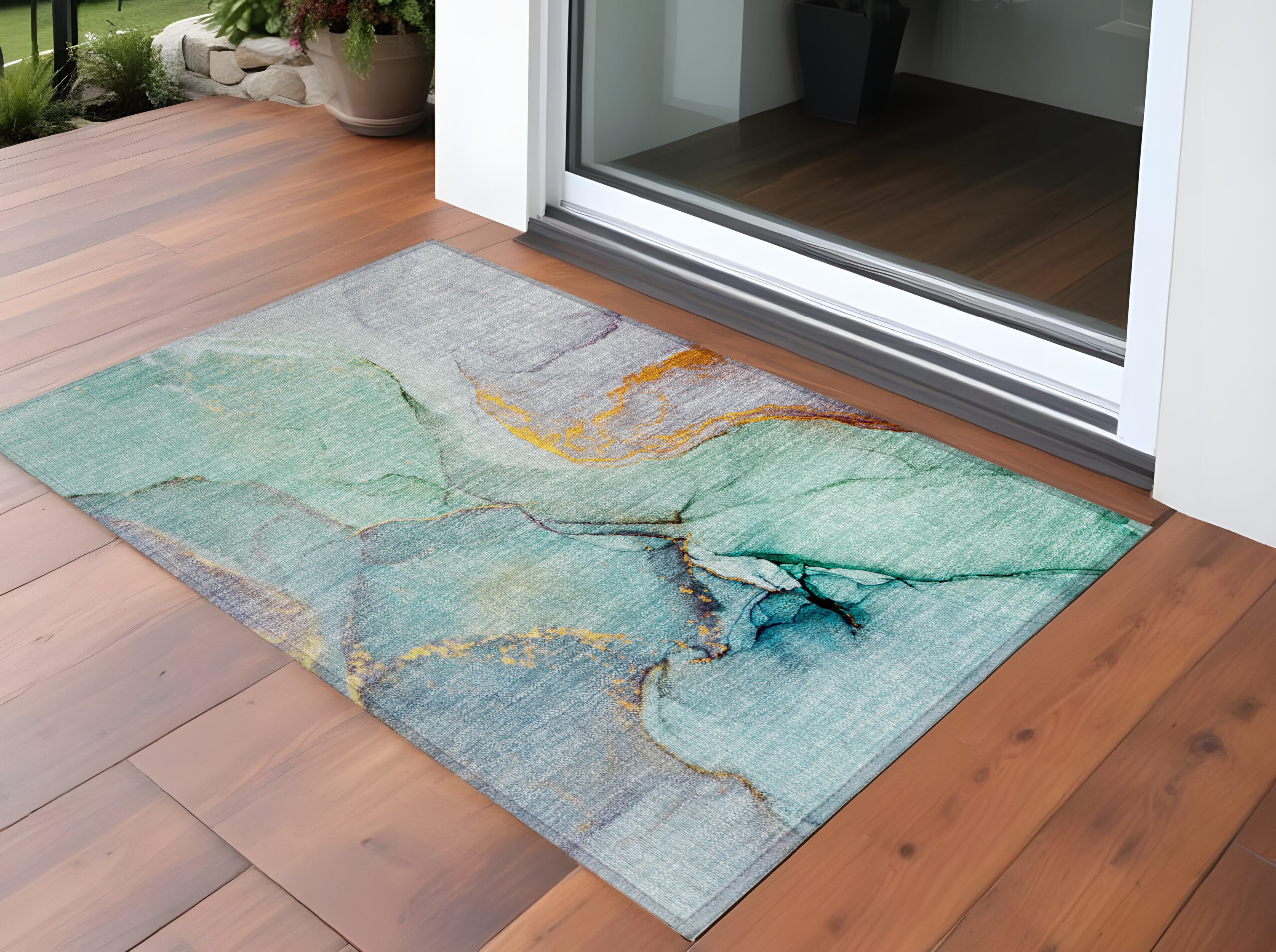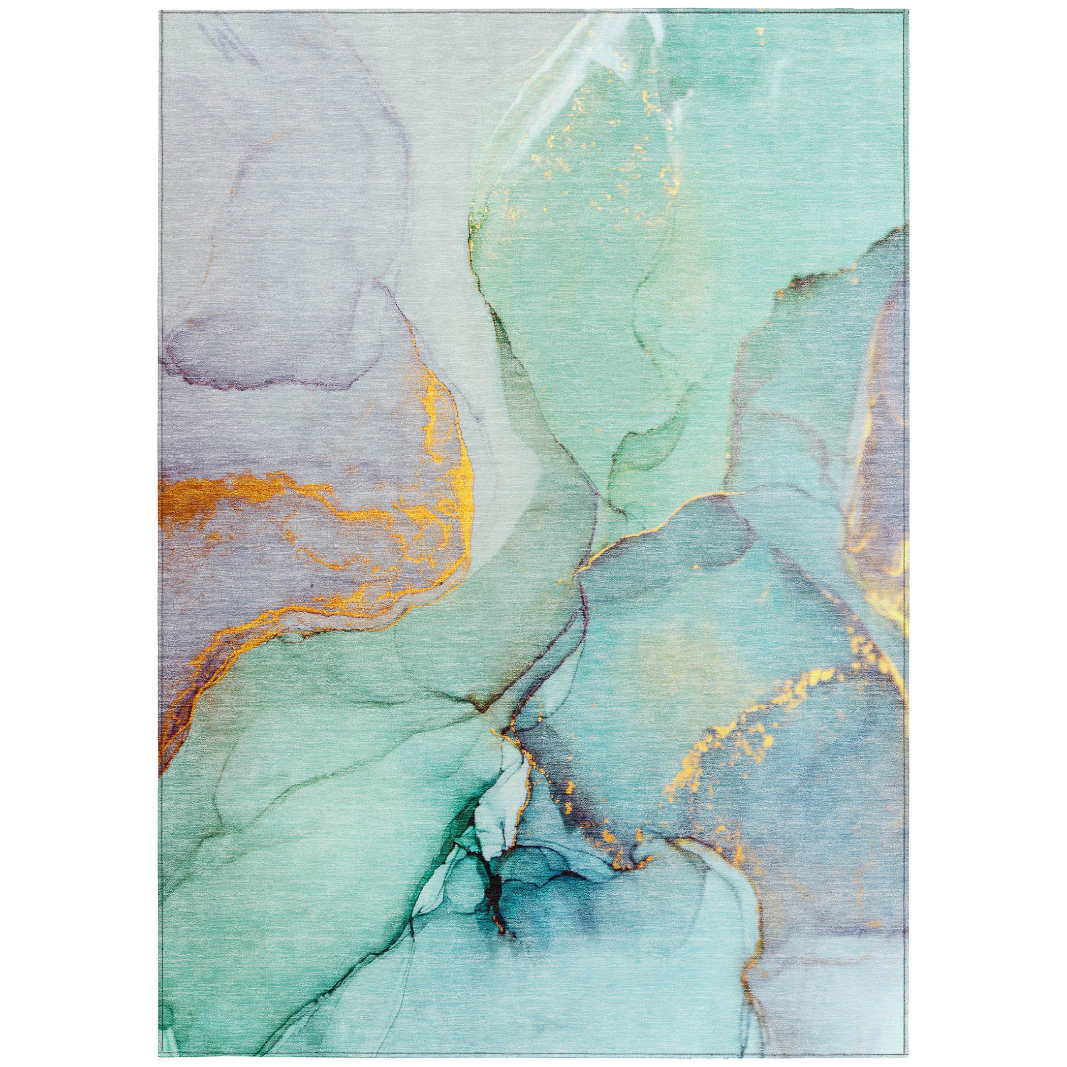 3′ X 5′ Teal Abstract Washable Non Skid Indoor Outdoor Area Rug