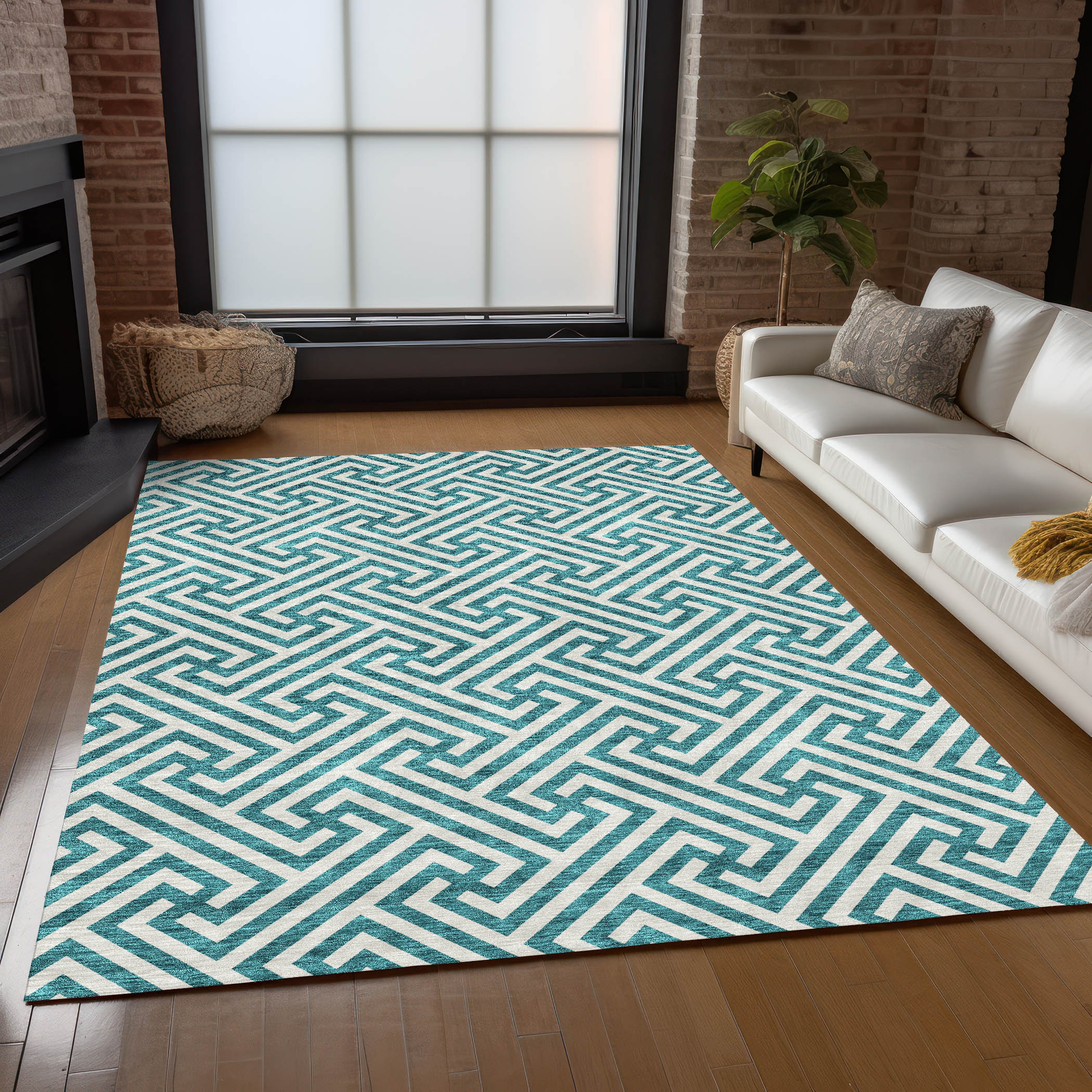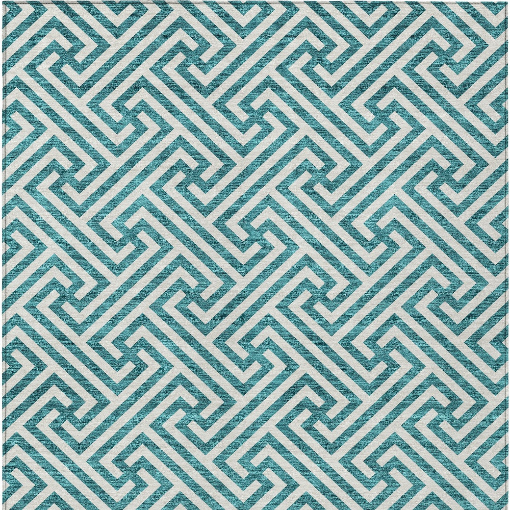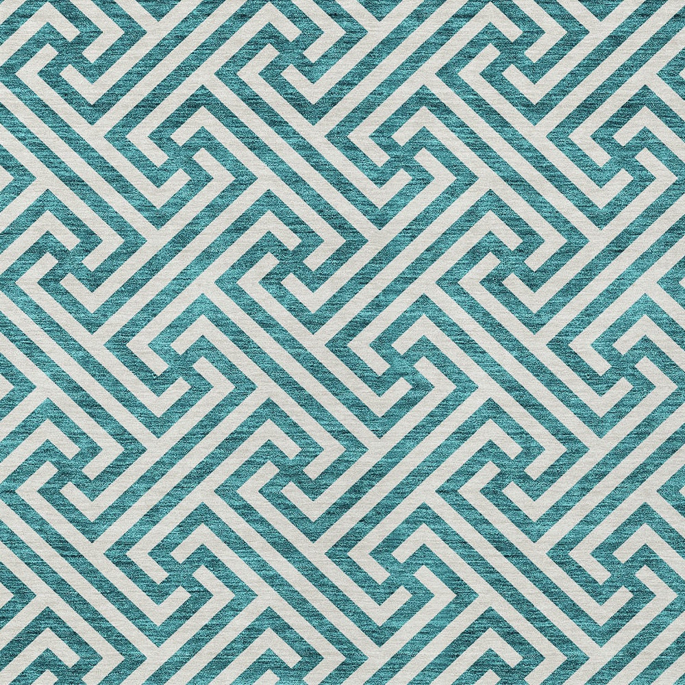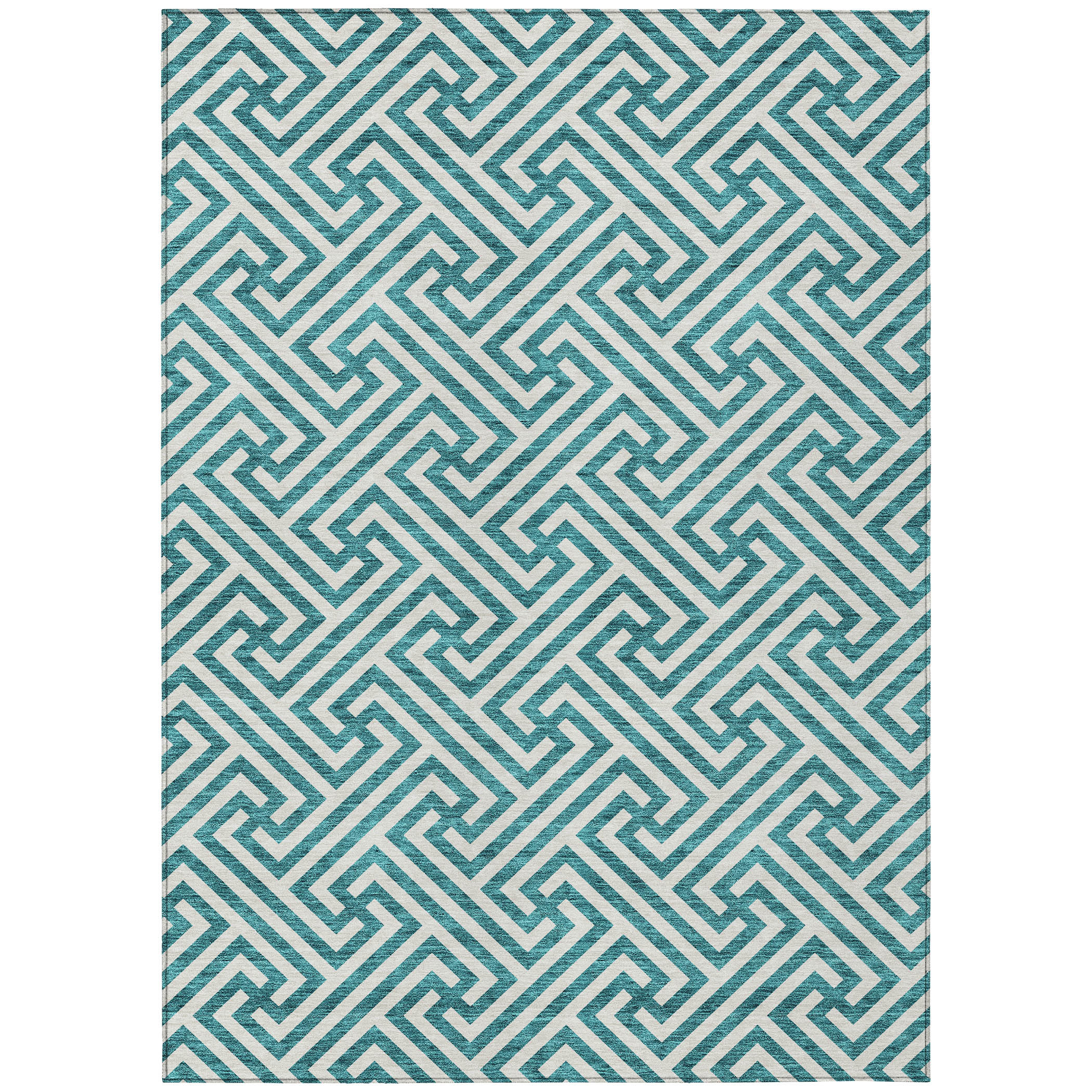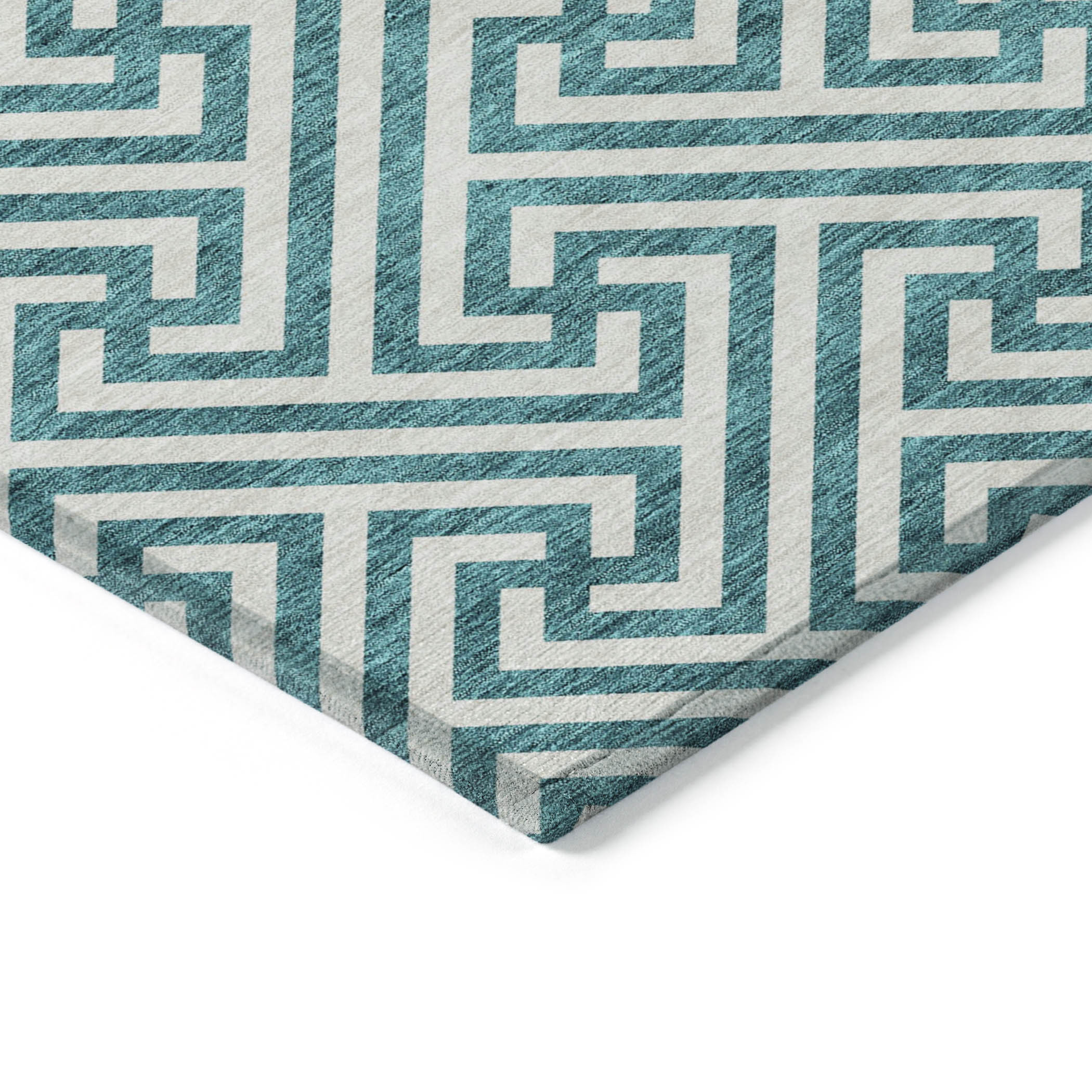 3′ X 5′ Teal Blue And Ivory Geometric Washable Indoor Outdoor Area Rug