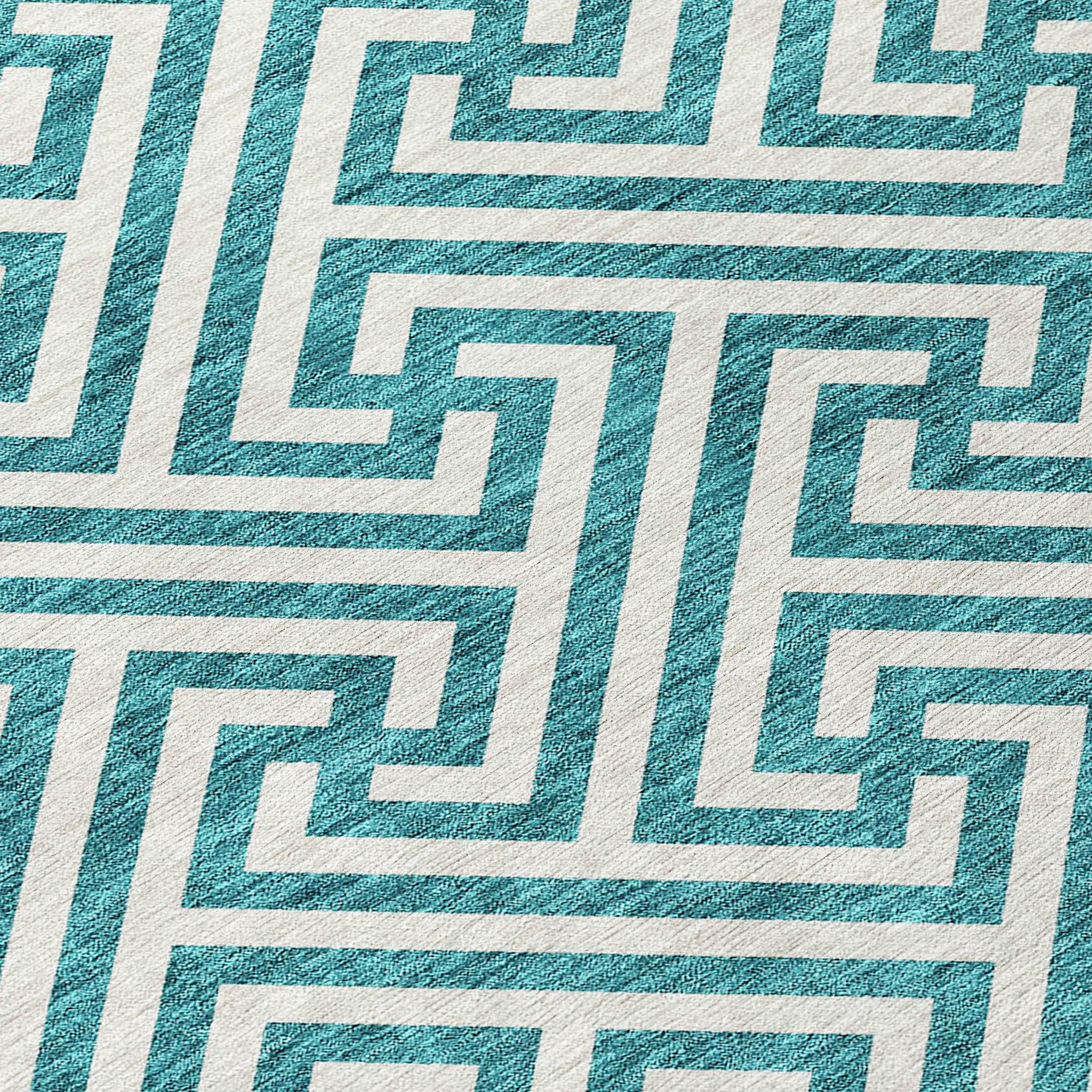 Add great coloration and comfortable texture to your space with this 3-foot x 5-foot teal blue and ivory geometric washable indoor outdoor area rug. This rectangle shaped rug features a geometric design that will work well both indoors or out. A classic shape marries with good looking design for your living room, hall, bedroom, porch, patio, or poolside. Ideal for outdoor spaces or high traffic areas with kids and pets, this rug is made from heavy duty polyester that is stain resistant to help repel water, dirt, and stains. Versatile in use, durable, and easy to maintain, this rug is an ideal solution to add a decorative and inviting touch to your indoor or outdoor space. 36-inch h x 60-inch w x 0.19-inch d.