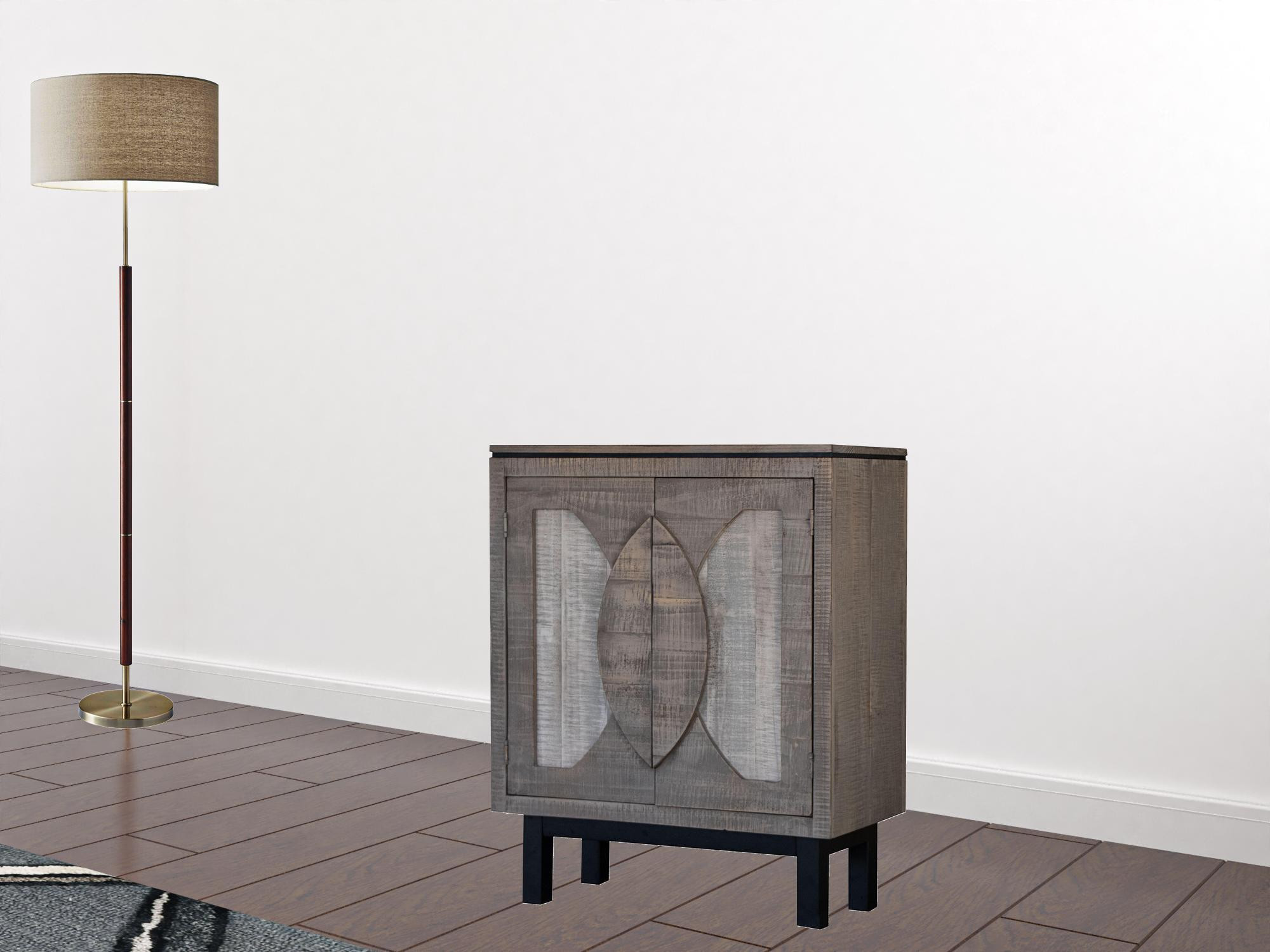 32″ Gray Solid and Manufactured Wood Distressed Buffet Table
