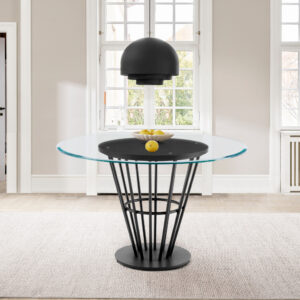 Make a statement with the 32″ white and black marble and metal dining table and infuse a dash of character and personality into your space. The white marble top of this table is a nice visual contrast to the high quality, black metal of the base. The two-tone finish is attractive and fashionable. A shiny and sheer gloss finish gives this table a bit of a modern and contemporary vibe. A beautiful pedestal base adds some dimension and elegance to your dining. This dining table seats 3 people comfortably. This table is the sturdy, reliable and stylish answer to your dining room needs. This eye-catching dining table is ready for you to enjoy breakfast for one or entertain your guests. 30.5″ H x 32″ W x 32″ D