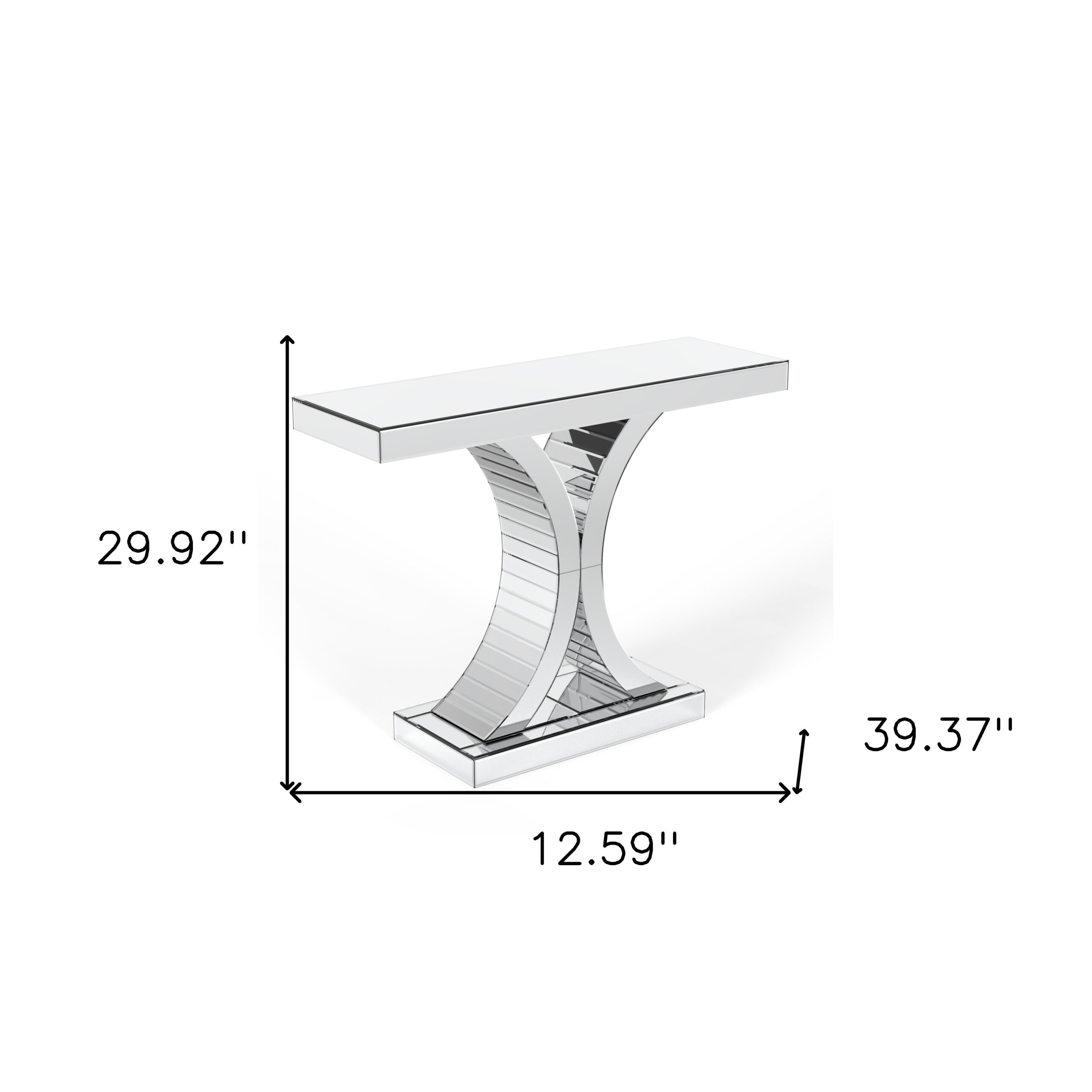 Don’t settle for a boring entryway, upgrade your home with our 39-inch silver mirrored glass pedestal console table today. This rectangular table is ideal for up against the wall, can free stand in a room, or sit behind the sofa perfectly. The sparkly glass top and base of this console table will immediately stand out and grab your guests’ attention. Ideal for living rooms, bedrooms, home offices, and lounge areas, this console table is not only good looking but multi-functional and practical addition to your space. 29.92-inch h x 39.37-inch w x 12.59-inch d.