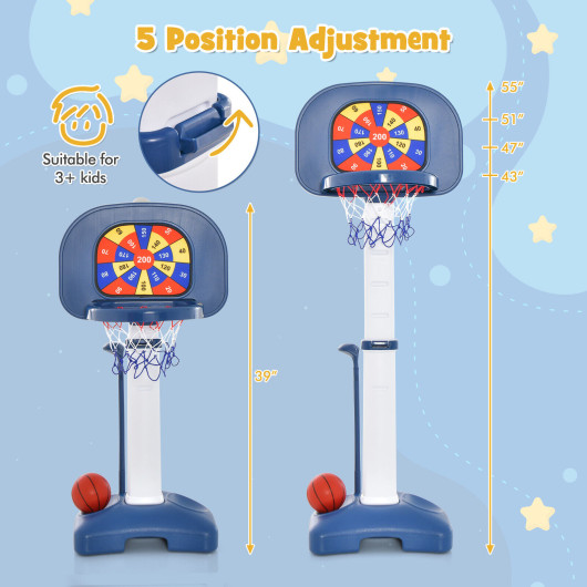 4-In-1 Adjustable Kids Basketball Hoop with Ring Toss Sticky Ball