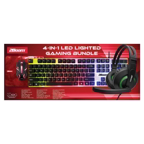 This 4-in-1 gaming bundle has it all–keyboard, mouse, gaming headset and mousepad. Enjoy the colorful light FX on the light-up keyboard and mouse. The headset has a microphone and is lightweight for comfort. Gaming mousepad provides high precision control.