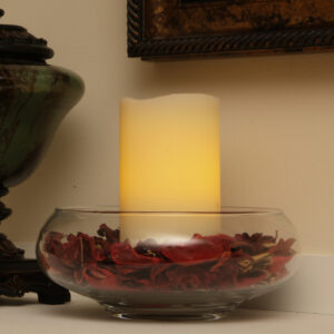 With our 4-inch ivory flameless pillar candle, you can experience the warm and inviting glow of candlelight. The classic, cylindrical shape makes this pillar candle a versatile addition to any decor style, whether it’s traditional, contemporary, or modern. Beeswax is a gift from nature, exuding a warm and golden glow. The flickering feature is designed to create an authentic candlelight experience. Let the warm glow of candlelight create an intimate and welcoming ambiance for your guests or a soothing atmosphere for yourself. 4-inch H x 3-inch W x 3-inch D