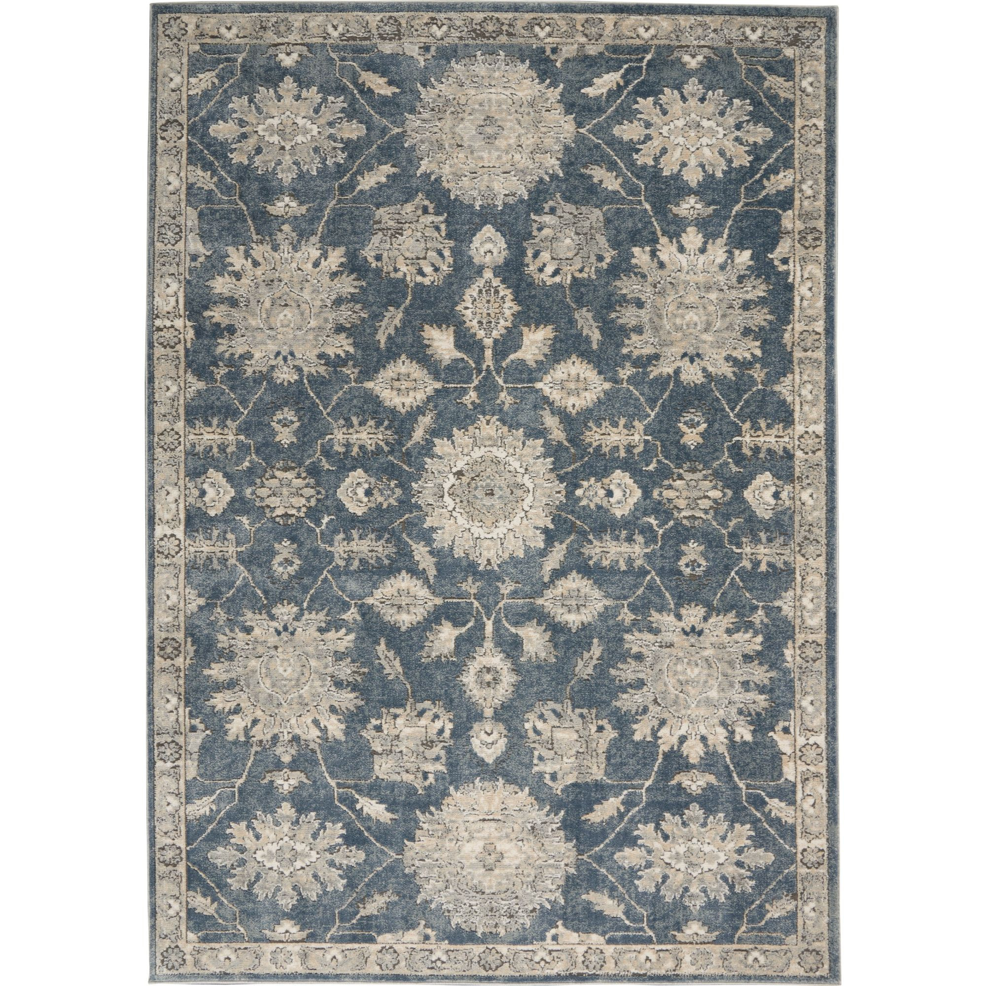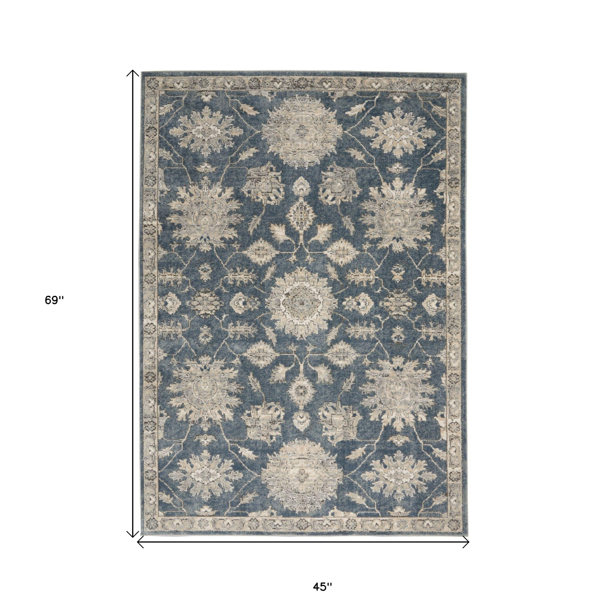 4′ x 6′ Blue and Beige Oriental Power Loom Non Skid Area Rug