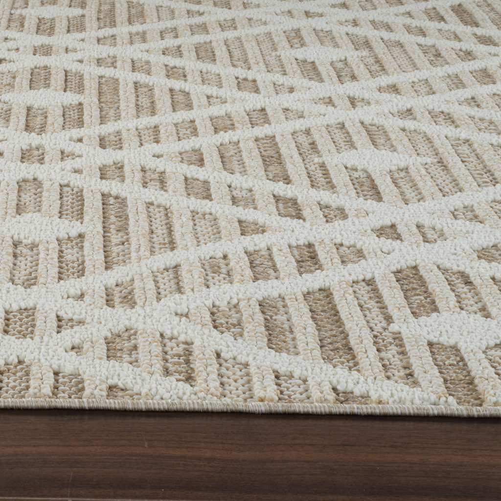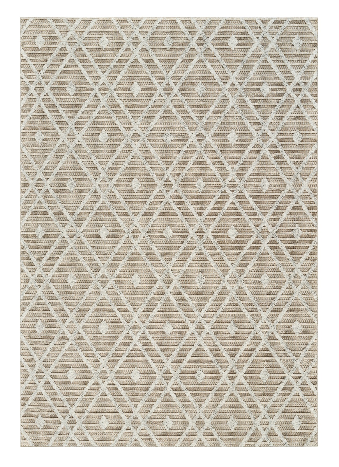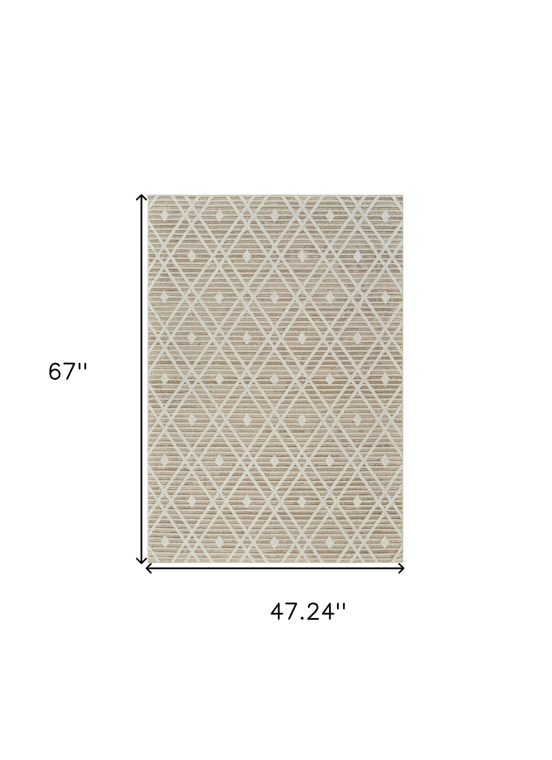 Add great coloration and comfortable texture to your space with this 4-foot x 6-foot cream and brown geometric distressed indoor outdoor area rug. This rectangle shaped rug features a geometric design that will work well both indoors or out. A classic shape marries with good looking design for your living room, hall, bedroom, porch, patio, or poolside. Ideal for outdoor spaces or high traffic areas with kids and pets, this rug is made from heavy duty polypropylene that is stain resistant to help repel water, dirt, and stains. Versatile in use, durable, and easy to maintain, this rug is an ideal solution to add a decorative and inviting touch to your indoor or outdoor space. 47.24-inch h x 67-inch w x 0.31-inch d