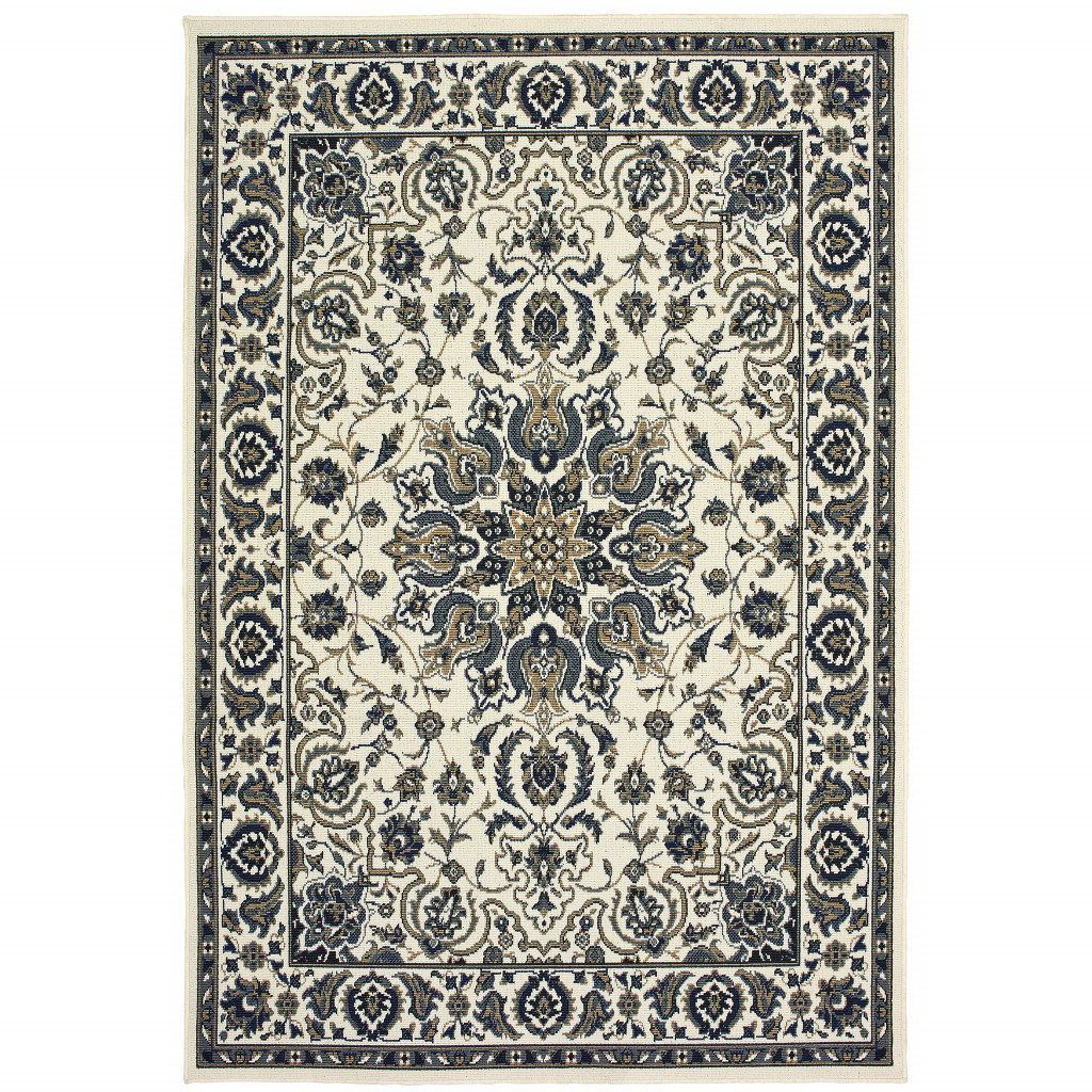 4′ X 6′ Ivory Oriental Stain Resistant Indoor Outdoor Area Rug