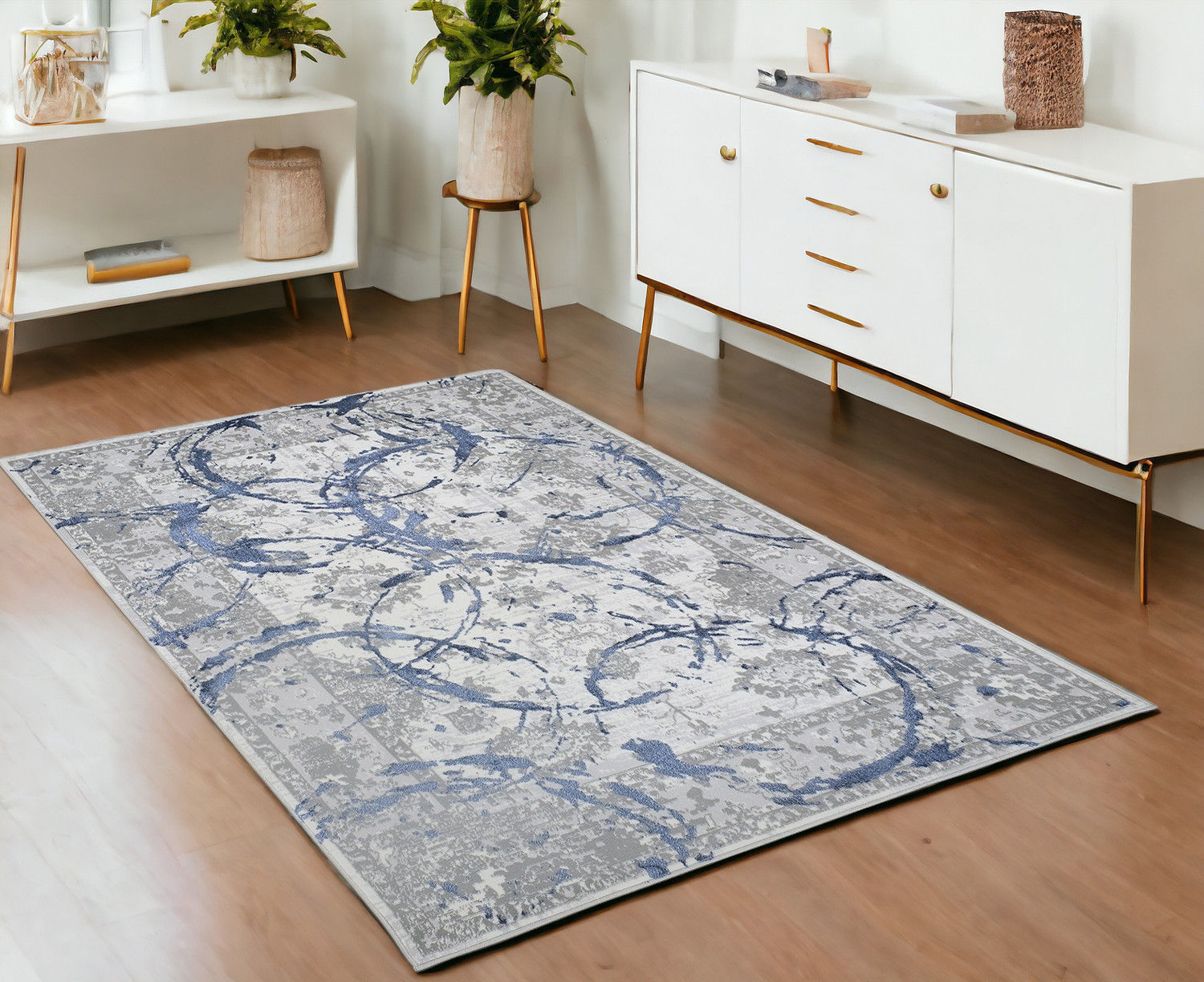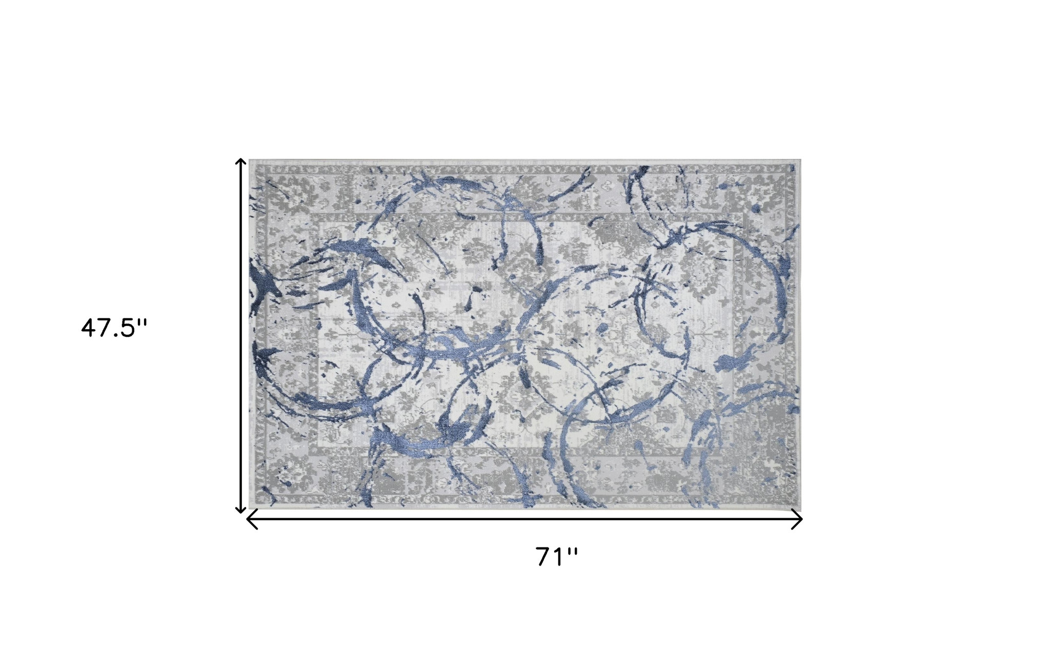 Add great coloration and comfortable texture to your space with this 4-foot x 6-foot navy blue abstract area rug. This rectangle shaped rug features a abstract design in navy blue to give it visual interest. A classic shape marries with good looking design for your space place this area rug against a hardwood or tile floor and it will enliven your living space with style and sophistication. 47.5-inch H x 71-inch W x 0.25-inch D