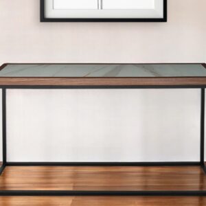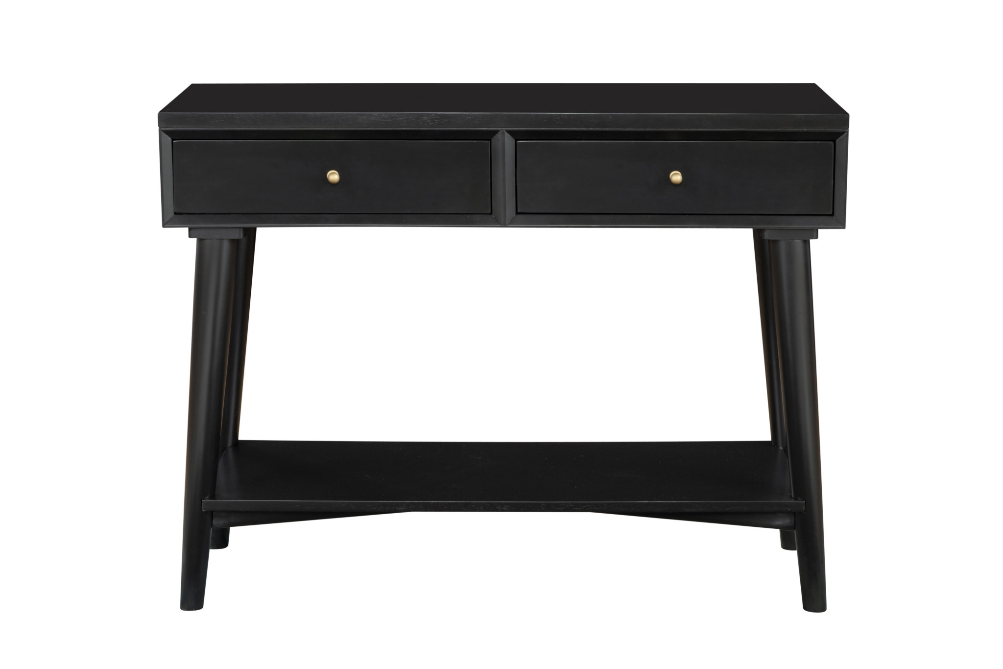 This 42-inch black floor shelf console table with shelves and drawers can provide a variety of practical functions such as providing extra storage space, serving as a display area for decorative items or acting as a catch-all for keys, mail, and other small items. This versatile table is a classic rectangular shape, which will easily fit into most any space in your home. This table has a top made with black manufactured wood that is known for durability and easy maintenance. In addition to a great top, our console table has a high quality manufactured wood floor shelf base that is durable and easy to clean and maintain. Versatile in use, console tables can be used for a variety of purposes in a variety of rooms and settings. 33-inch H x 42-inch W x 14-inch D