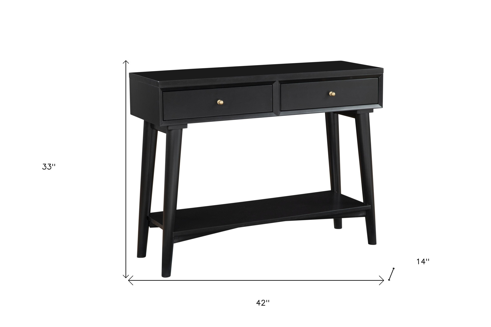 42″ Black Floor Shelf Console Table With Shelves And Drawers
