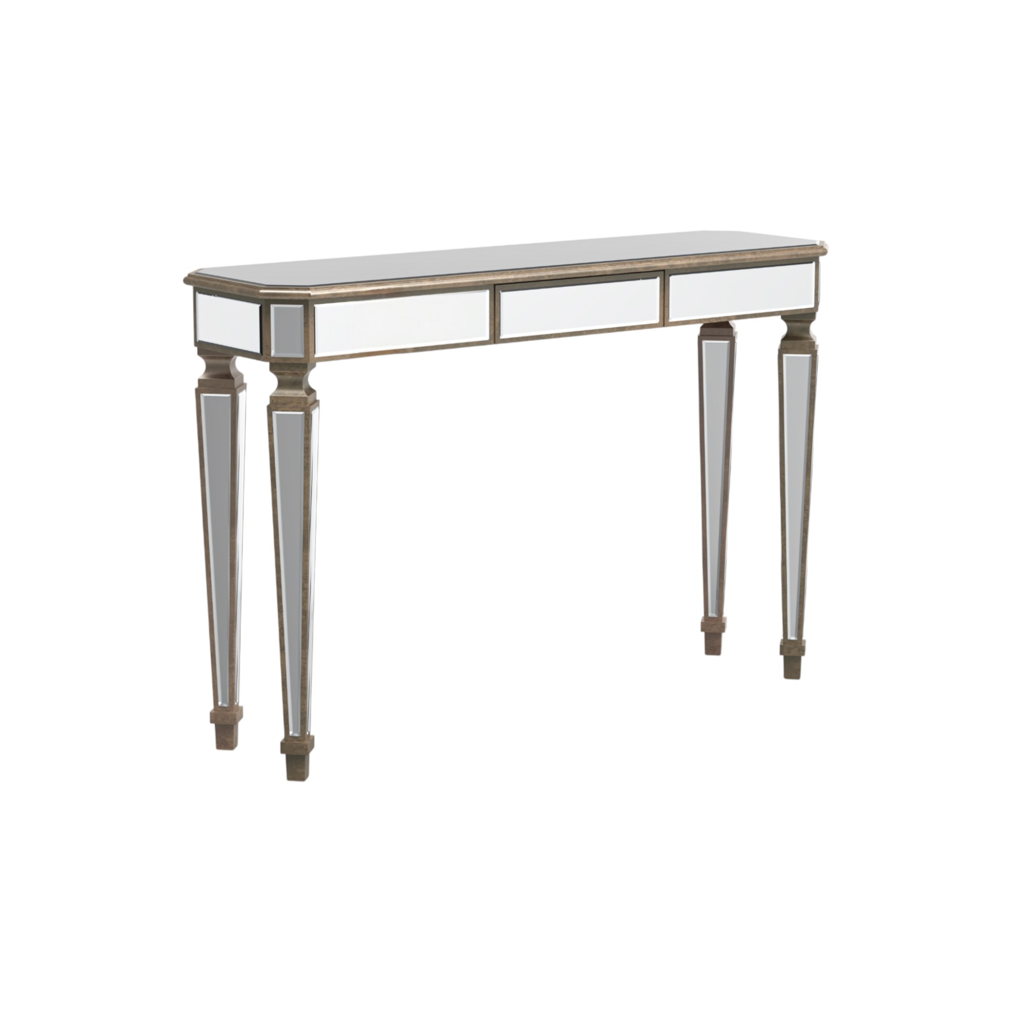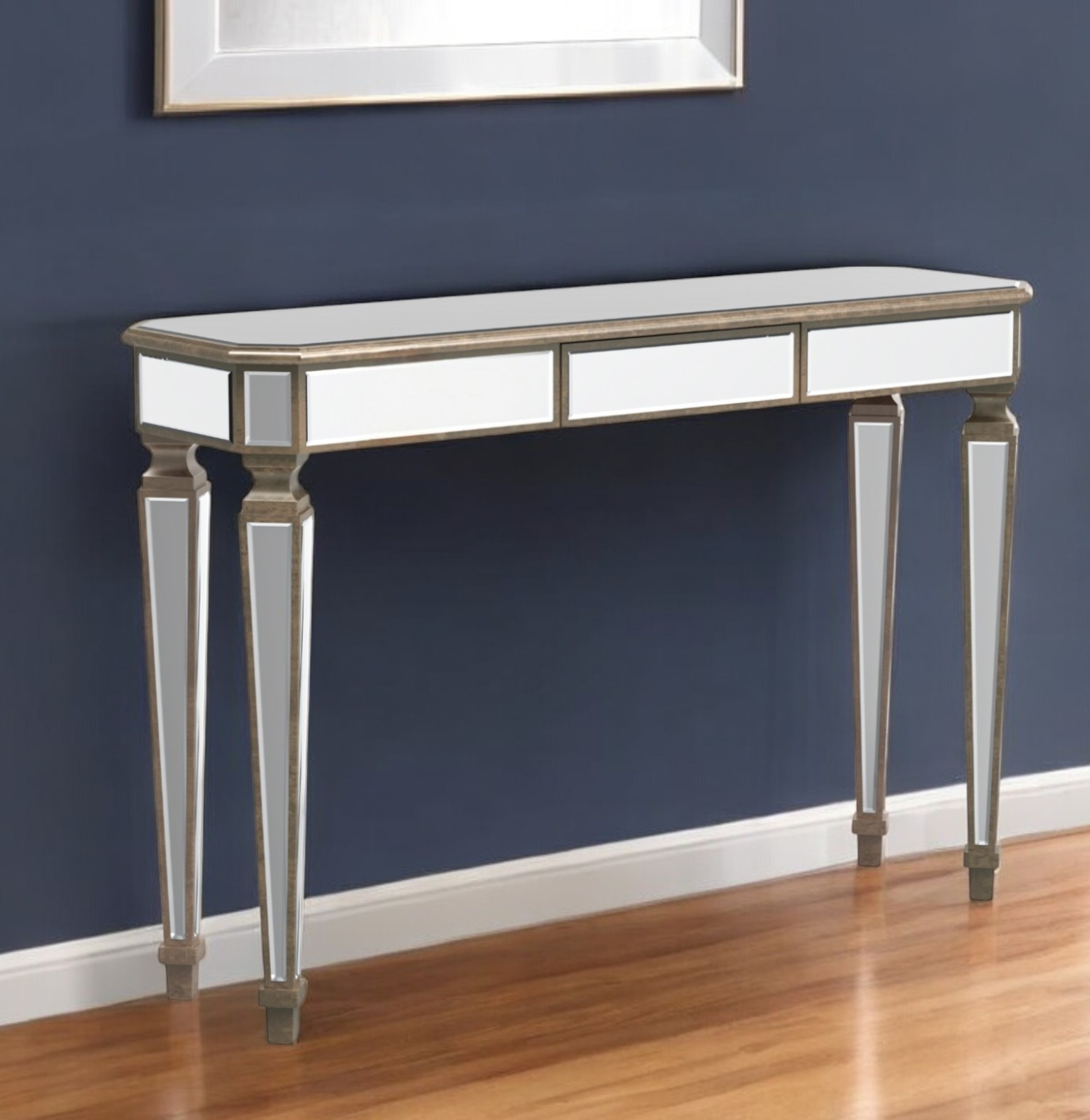 47″ Silver and Gold Mirrored Glass Console Table With Drawer