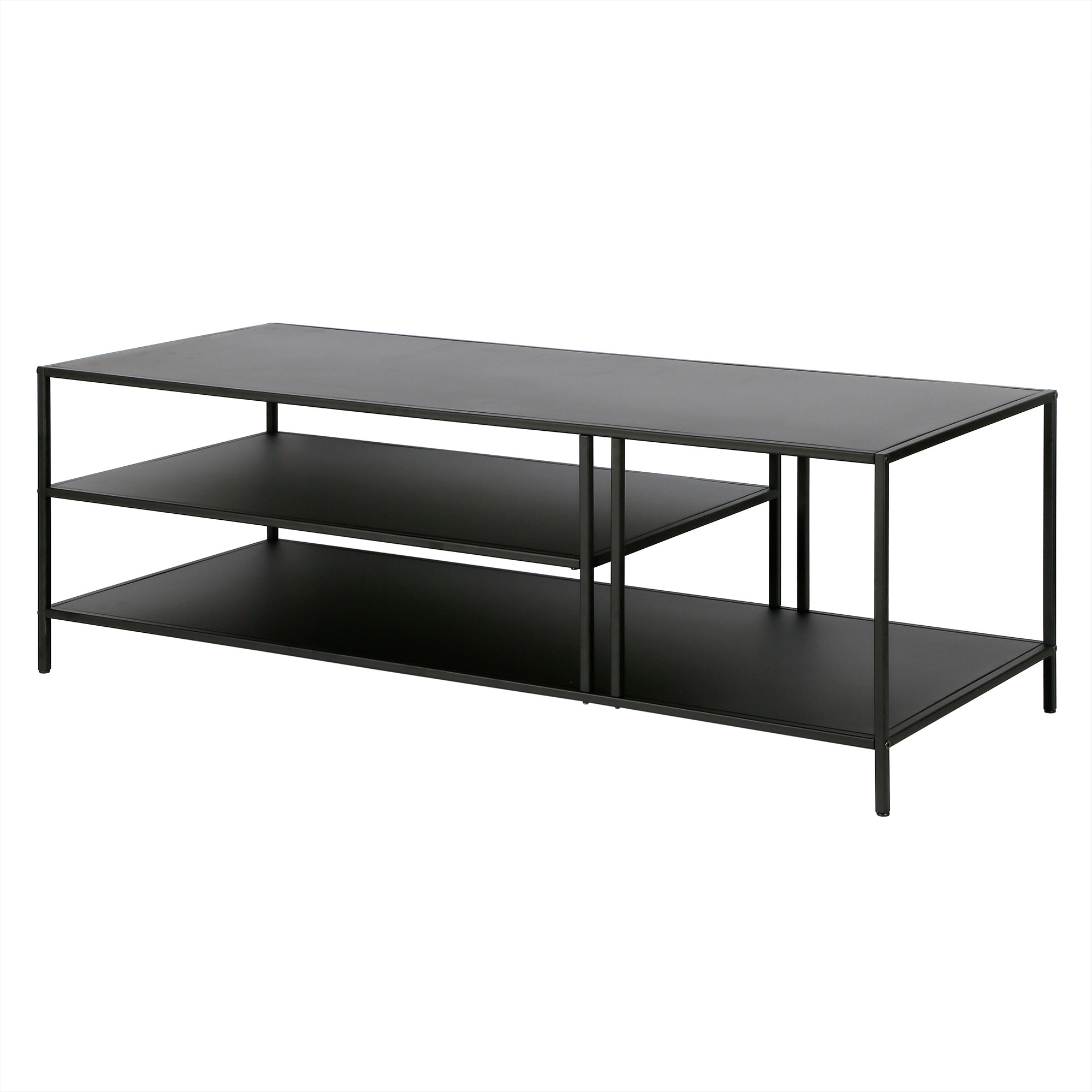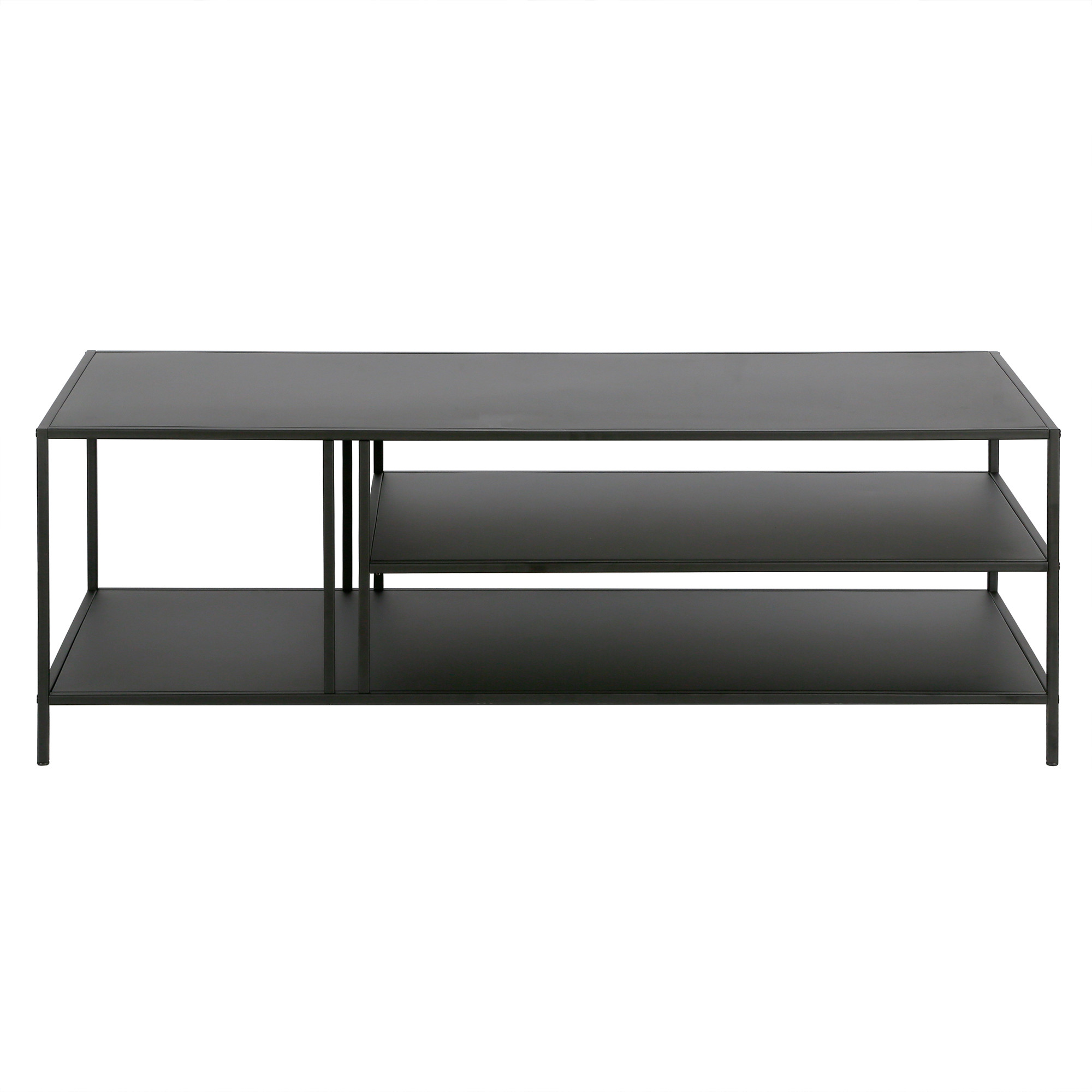 Add handsome, fashionable design to your living space with this 48-inch black steel coffee table with two shelves. Made of steel, the black coloration throughout gives this piece an updated and refreshing look. Includes 2 shelves for additional storage or display space. This classic rectangular table will be a great accent in any room it has a fresh design that will definitely breathe some fresh air into your interior. This coffee table is the sturdy, reliable and stylish answer to your living room needs. 16-inch H x 48-inch W x 20-inch D