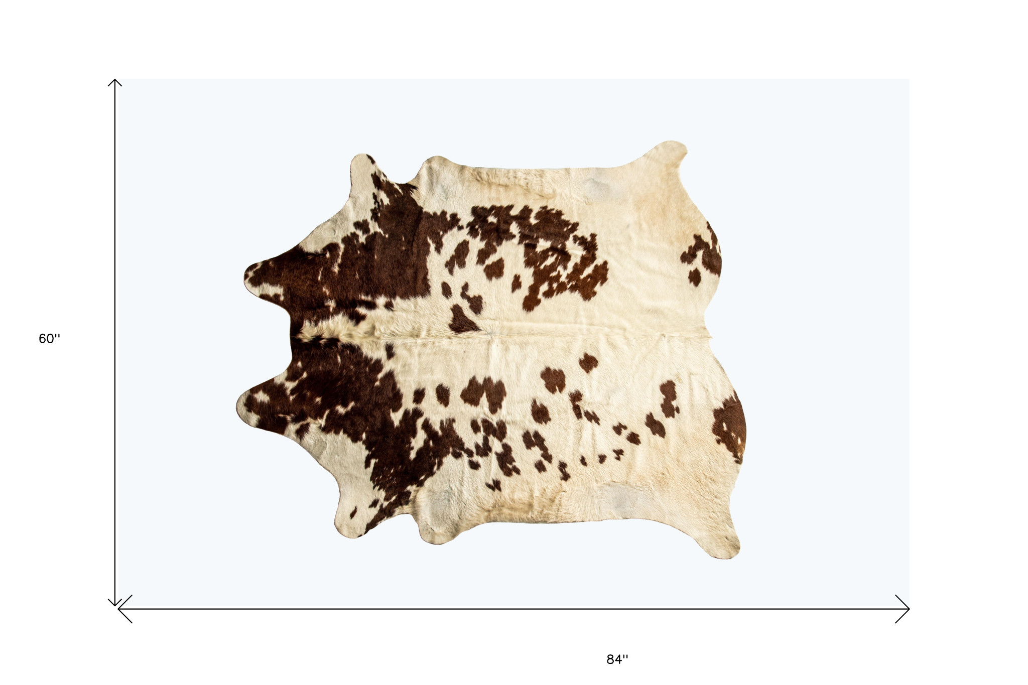 5′ x 7′ Brown and White Cowhide Hand Knotted Area Rug