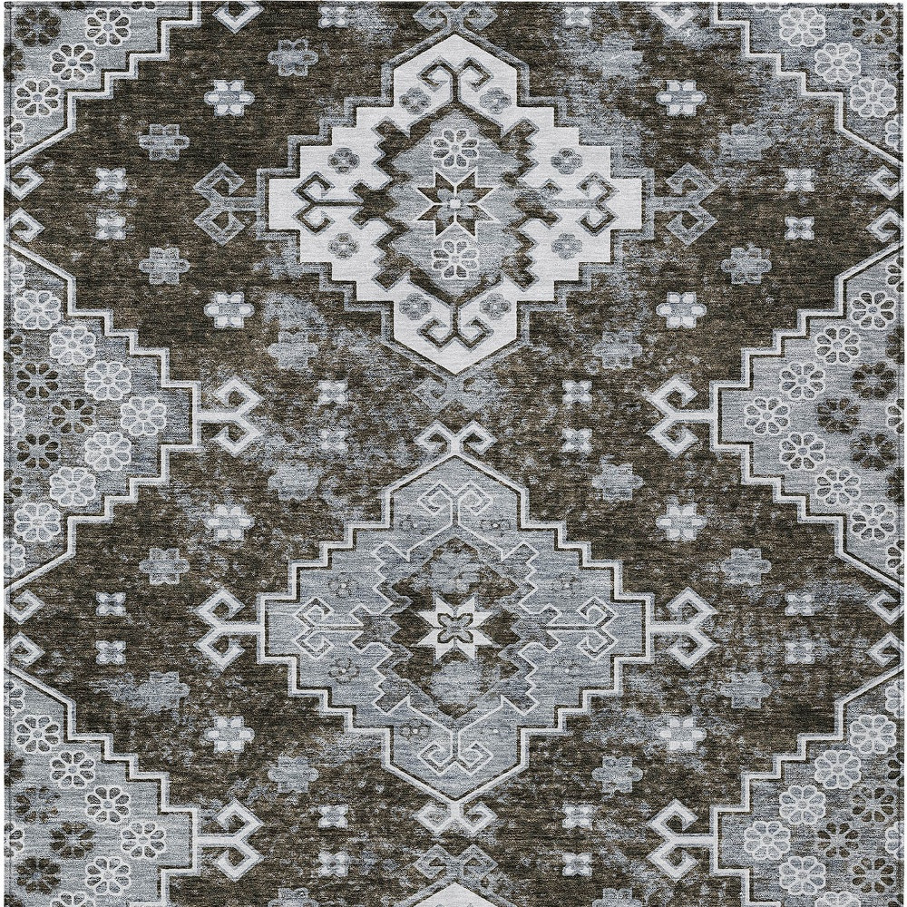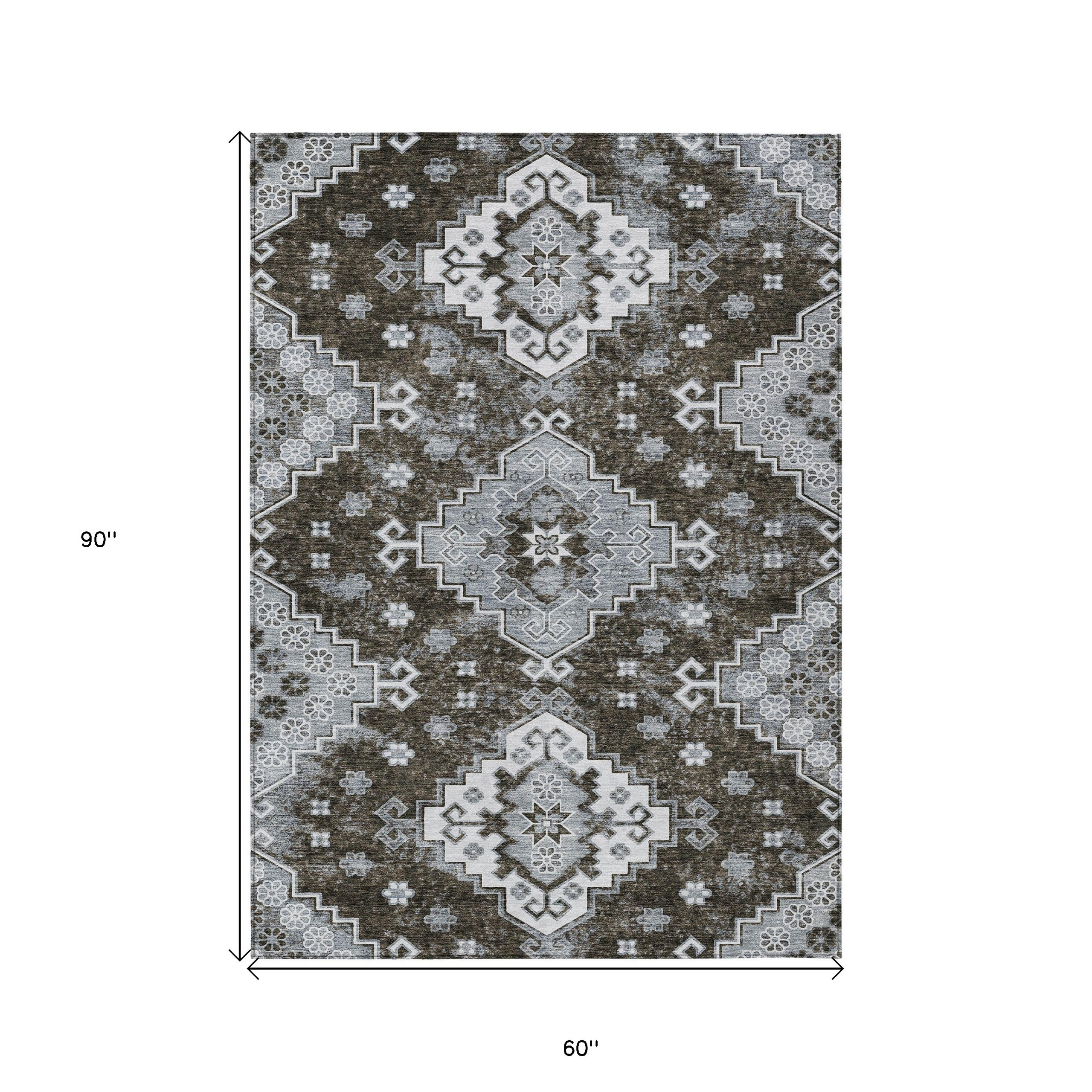 5′ X 8′ Brown And Gray Medallion Washable Indoor Outdoor Area Rug