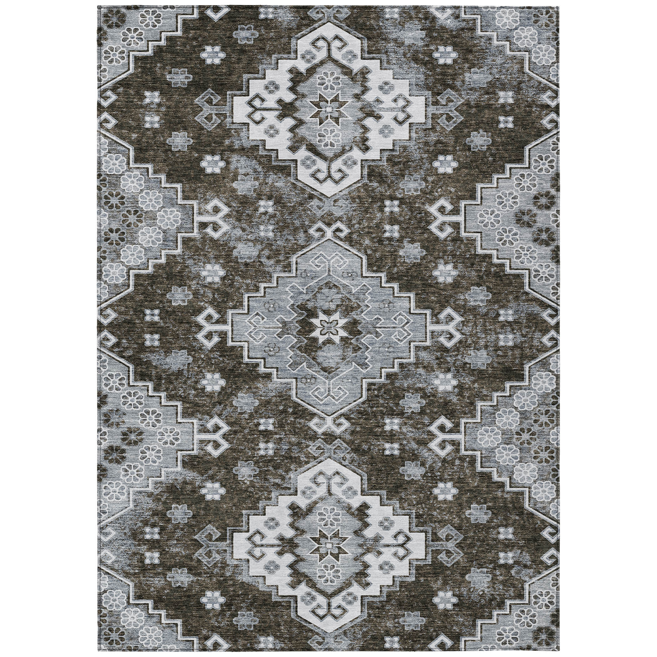 This 5-foot x 8-foot brown and gray medallion washable indoor outdoor area rug, is a great way to add warmth to a room. This rectangle shaped rug features a medallion design that will work well both indoors or out. A classic shape marries with good looking design for your living room, hall, bedroom, porch, patio, or poolside. Ideal for outdoor spaces or high traffic areas with kids and pets, this rug is made from heavy duty polyester that is stain resistant to help repel water, dirt, and stains. Versatile in use, durable, and easy to maintain, this rug is an ideal solution to add a decorative and inviting touch to your indoor or outdoor space. 60-inch h x 90-inch w x 0.19-inch d.
