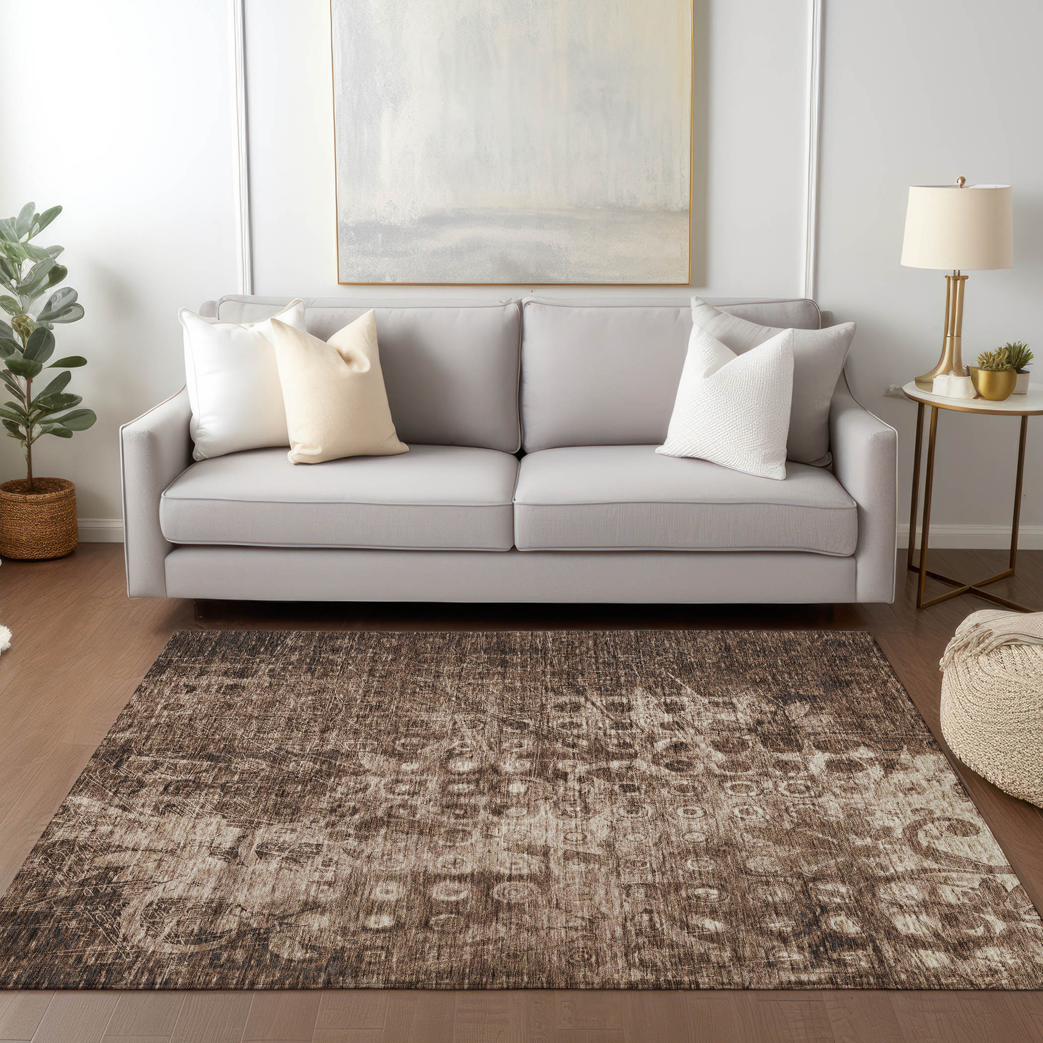 5′ X 8′ Chocolate Ikat Washable Indoor Outdoor Area Rug