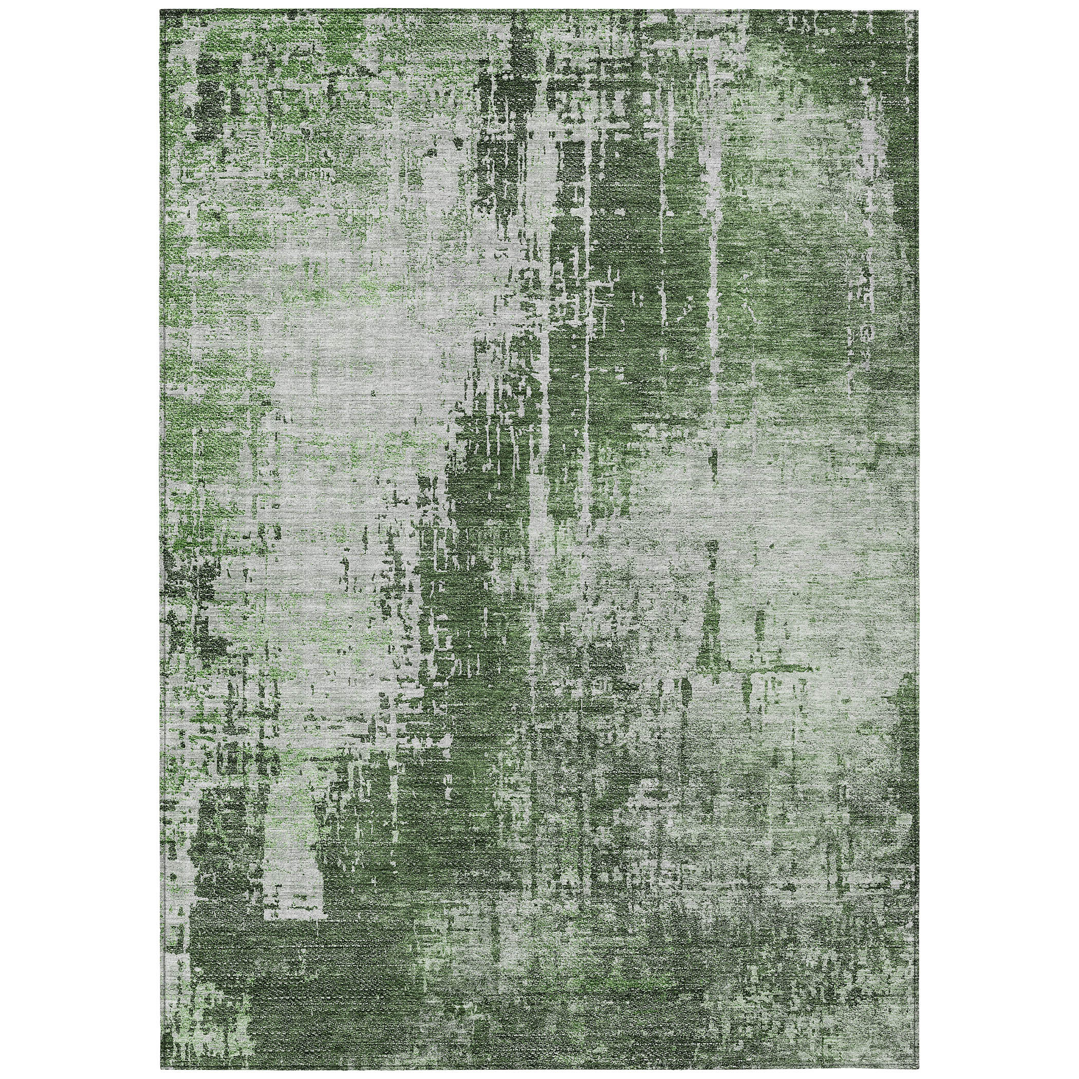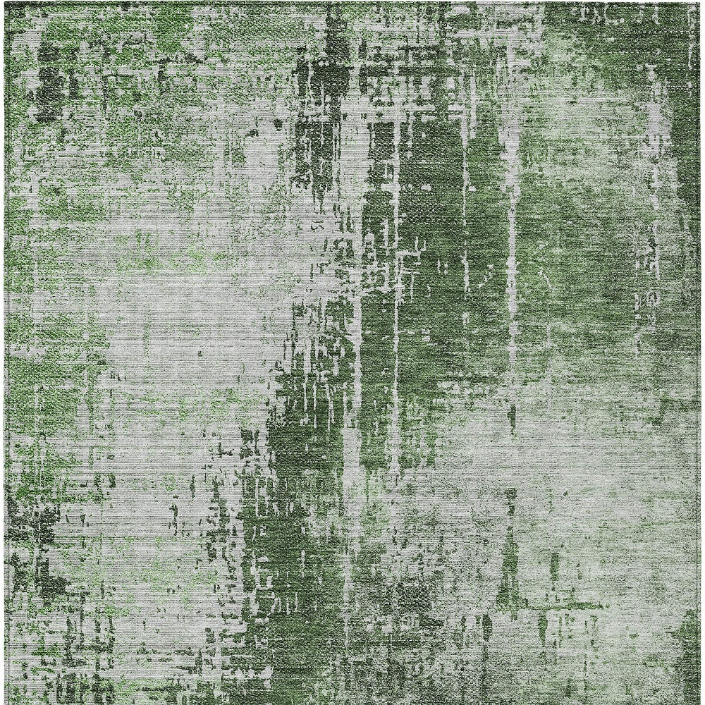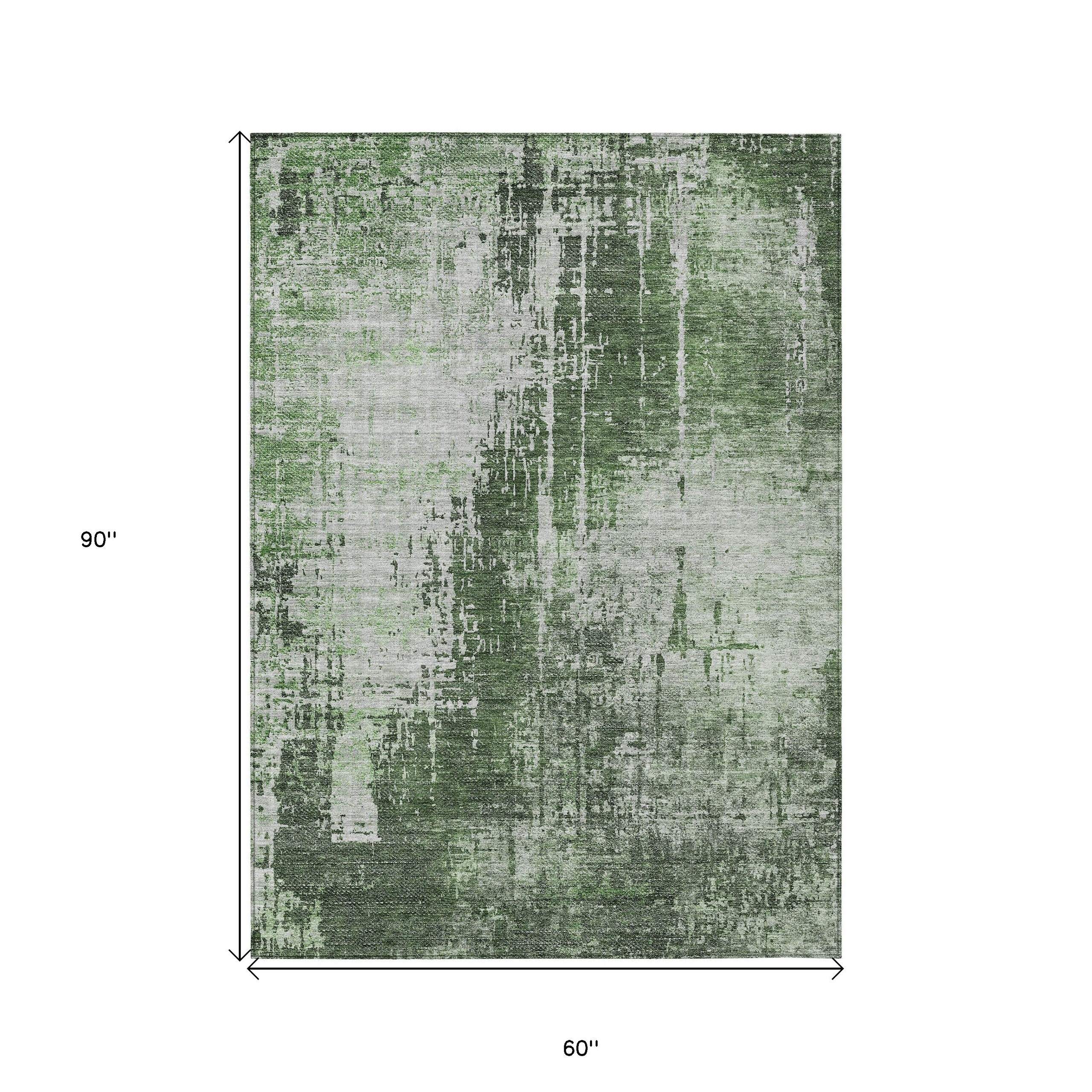 5′ X 8′ Fern Green And Green Abstract Washable Indoor Outdoor Area Rug