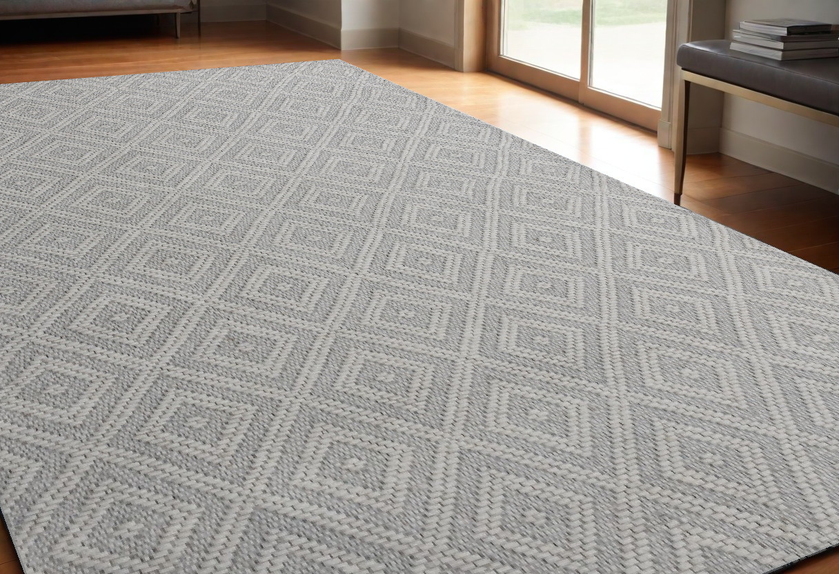 5' x 8' Gray and Ivory Geometric Hand Woven Non Skid Area Rug