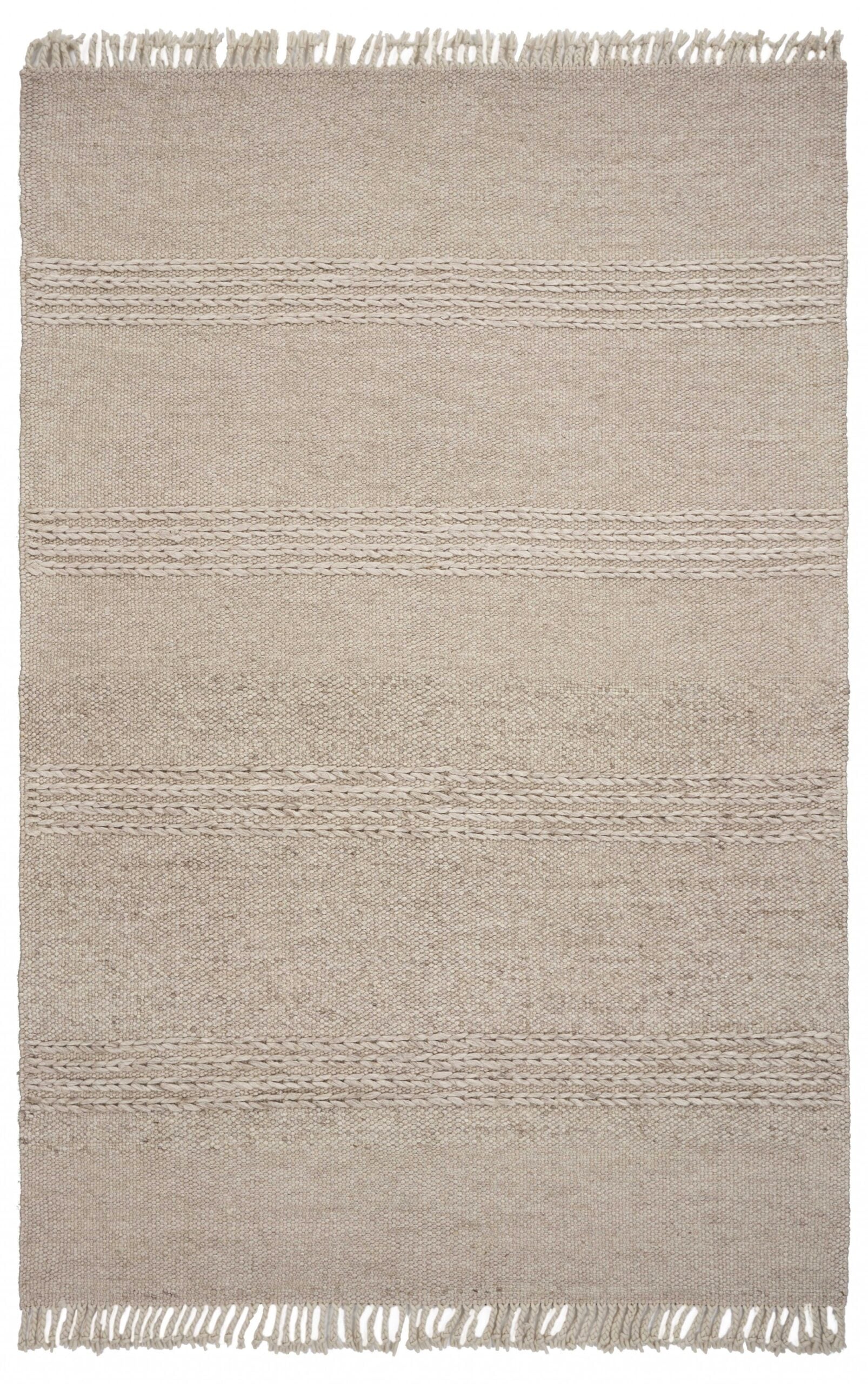 5′ X 8′ Natural Plain Wool Indoor Area Rug With Fringe