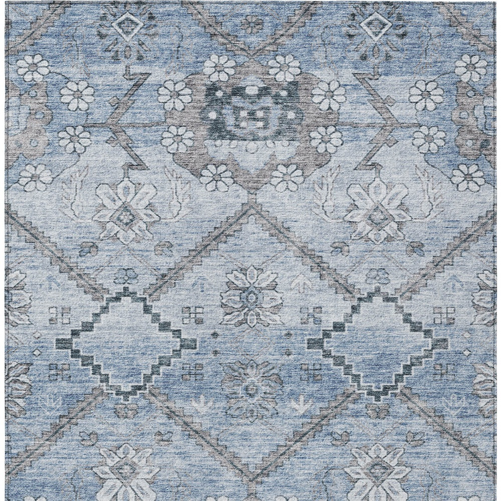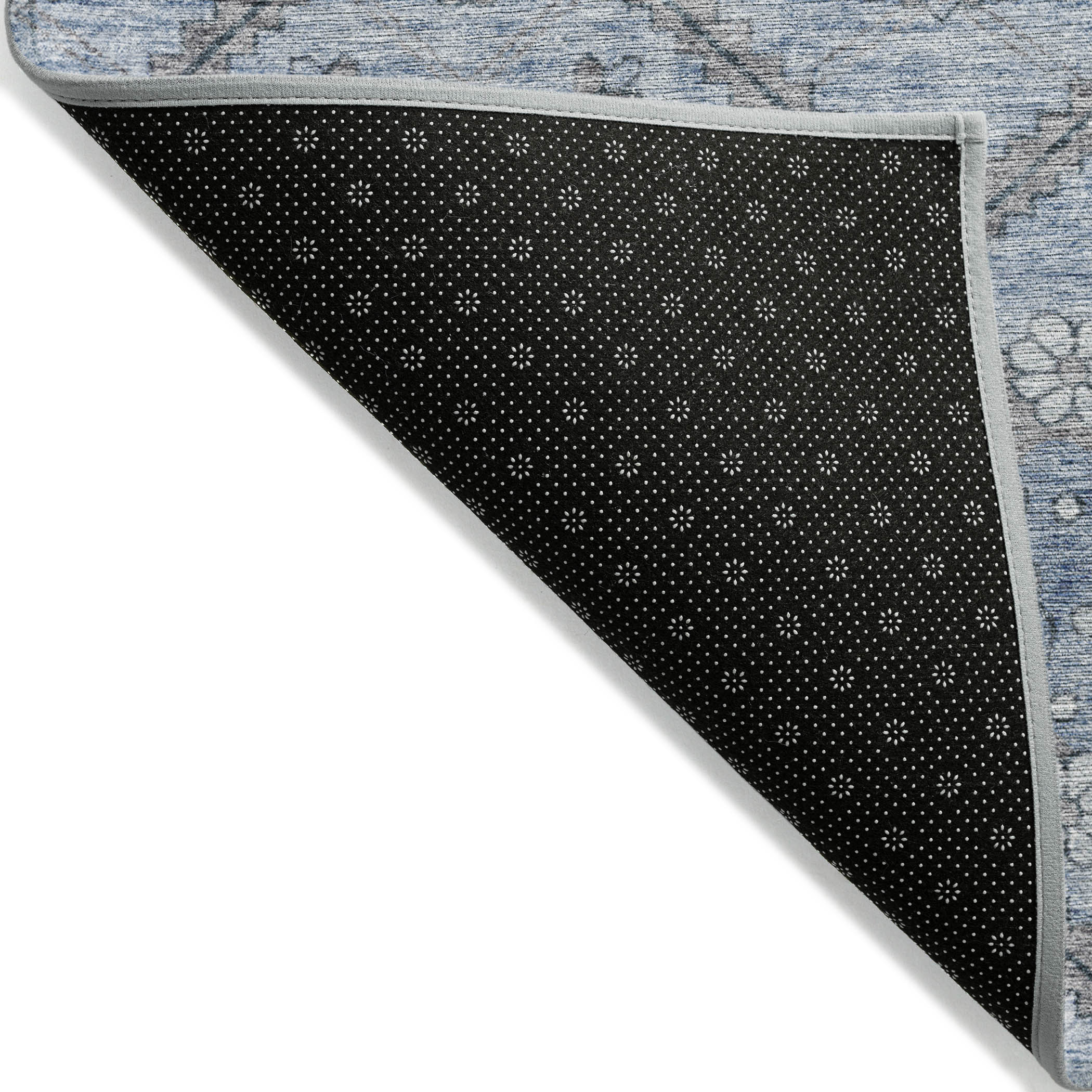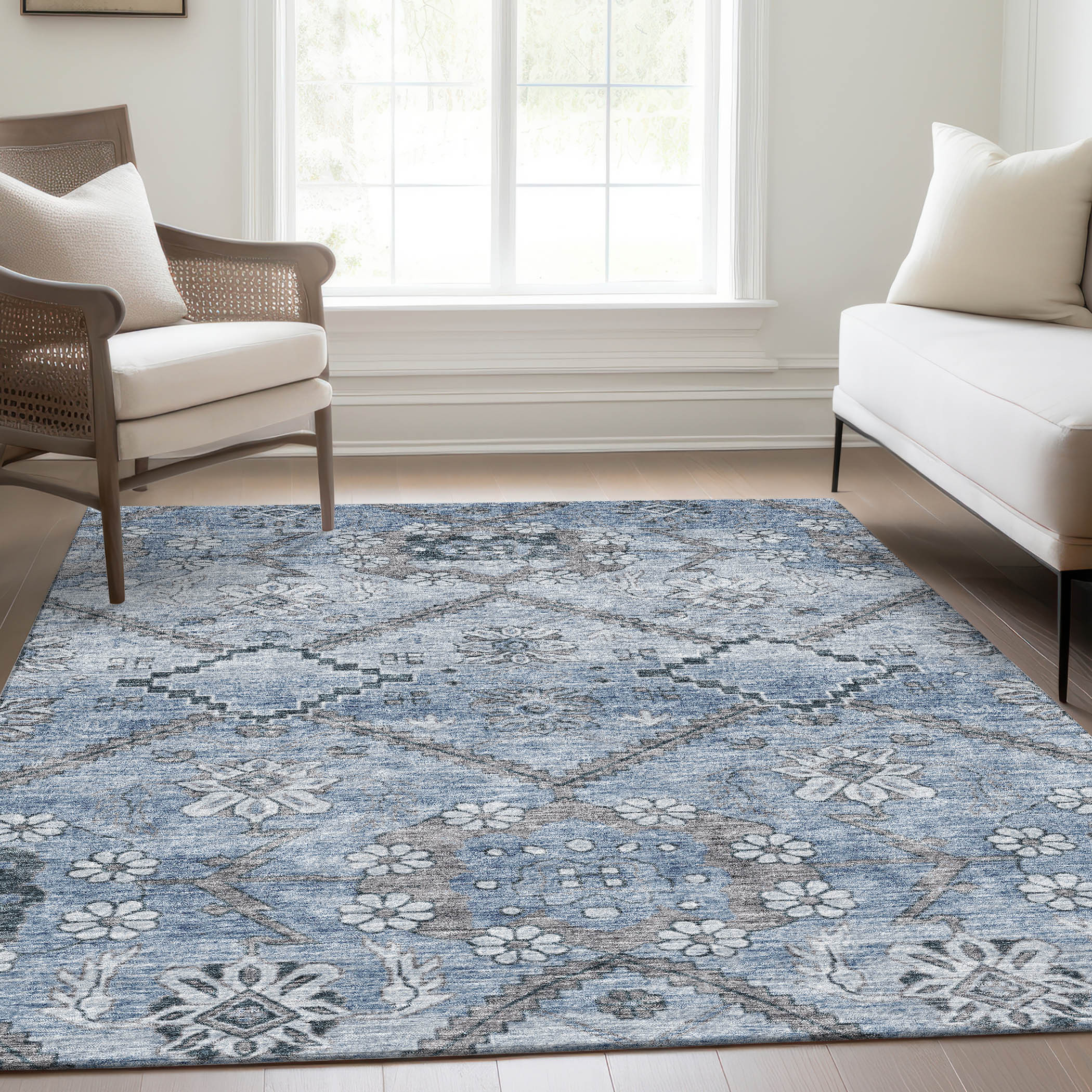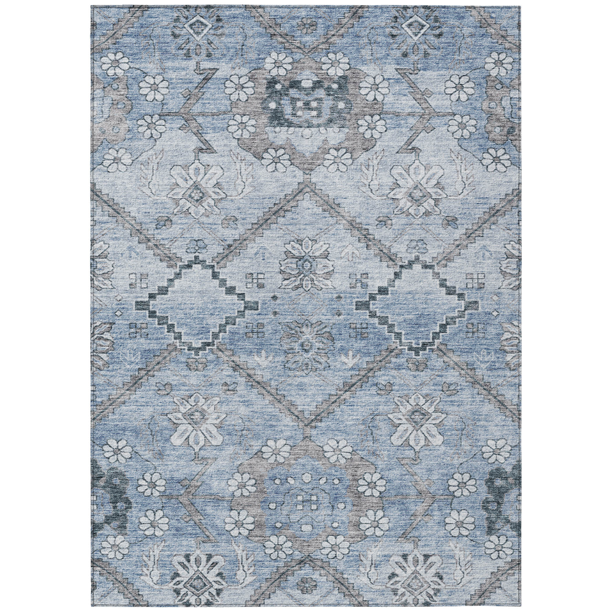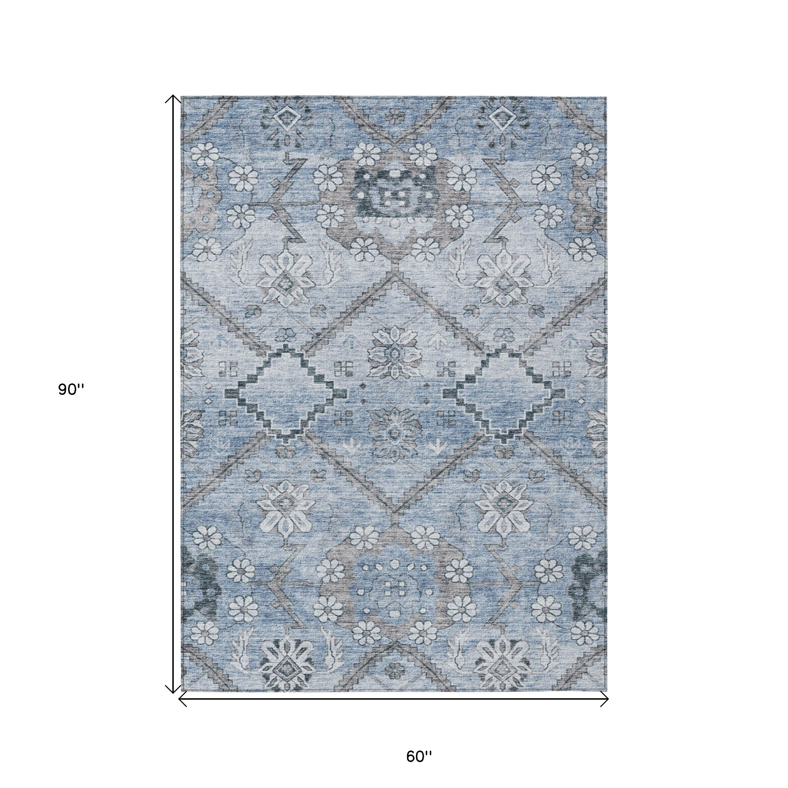 5′ X 8′ Sky Blue And Denim Blue Floral Washable Indoor Outdoor Area Rug