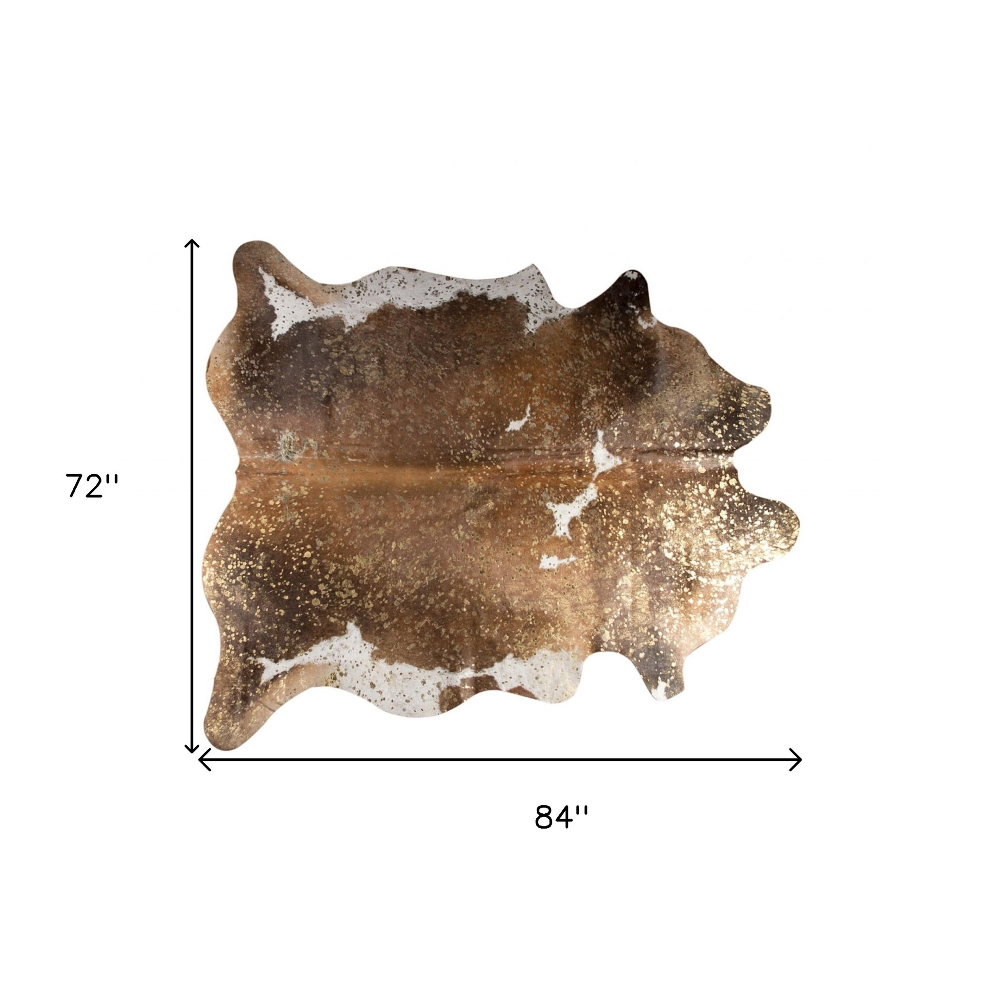 Add high end luxury and timeless style with this naturally soft and refined 6′ X 7′ Brown, White, and Gold Cowhide Area Rug. Each piece is hand selected by skilled craftsman who are trained to find the hides that are supreme in quality, colorations, and texture. This rug is naturally shed-free, stain-resistant, and has a luxuriously soft hand. Suitable for all areas of the home, including those with high traffic, this rug adds a unique and wonderfully beautiful styling element to your space. .25″ x 72″ x 84″