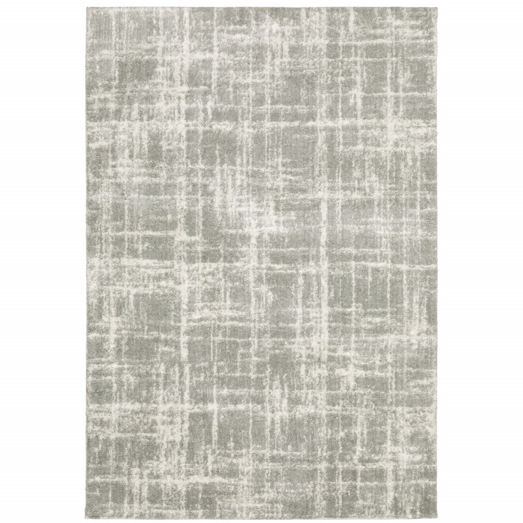 6′ X 9′ Grey And Ivory Abstract Shag Power Loom Stain Resistant Area Rug