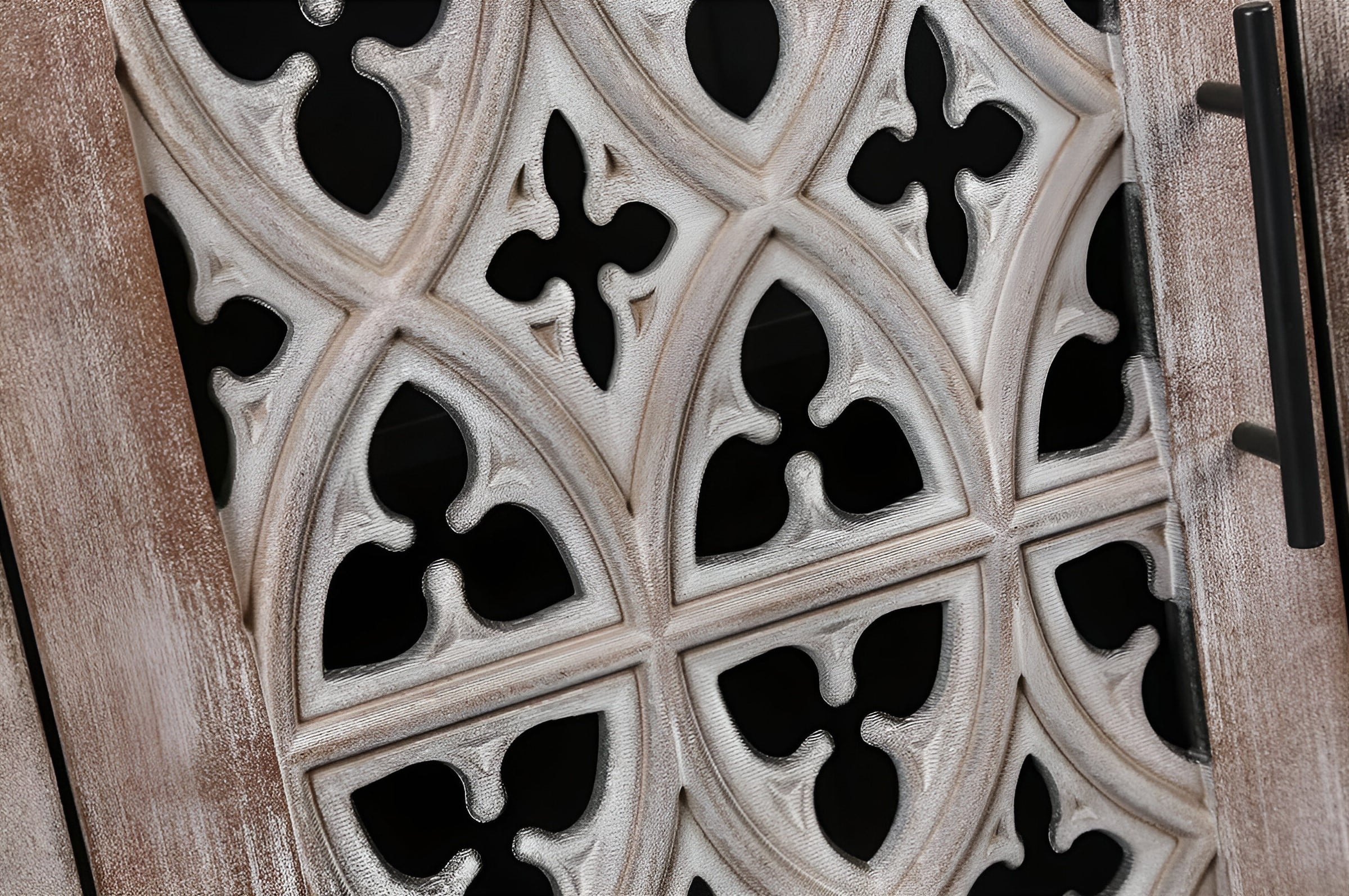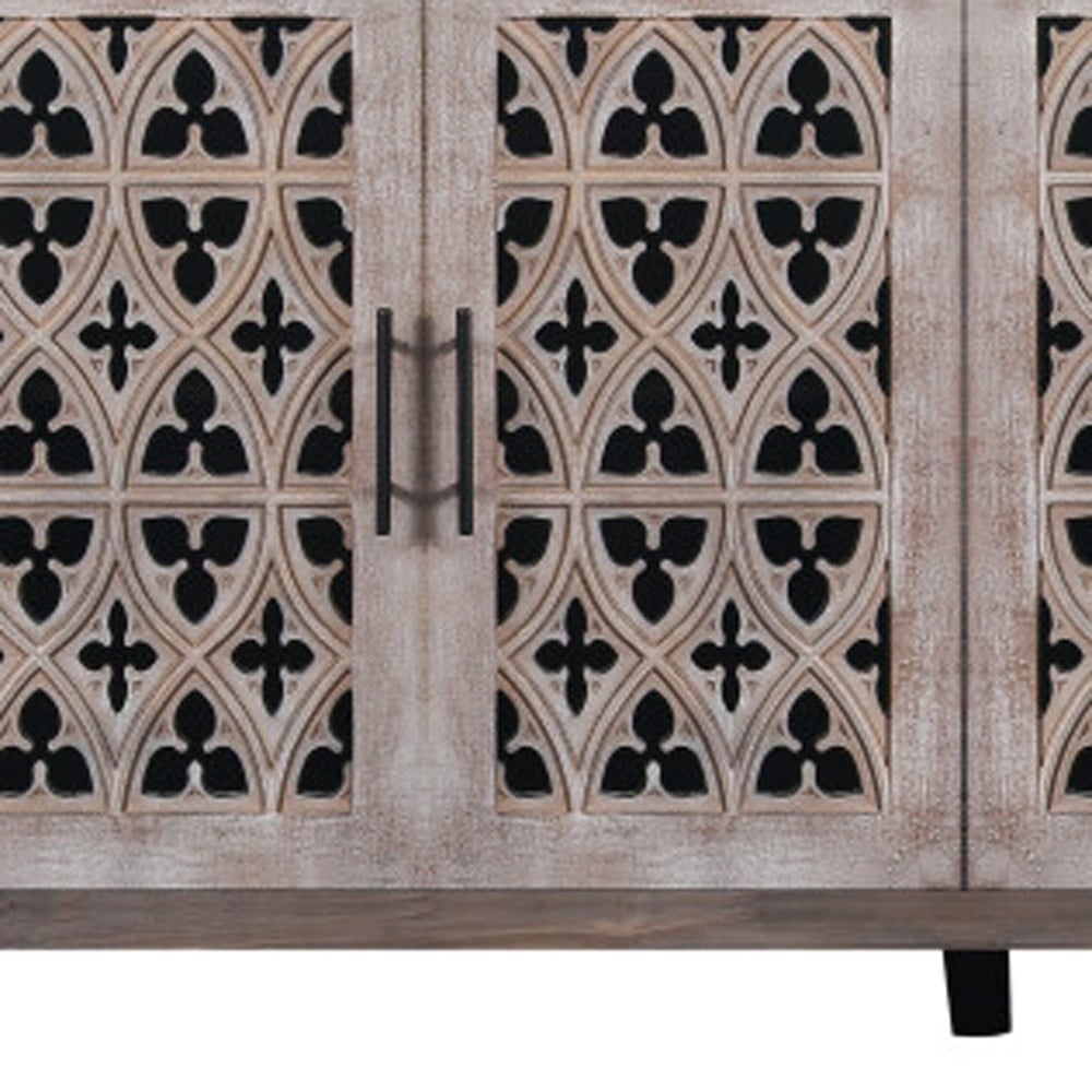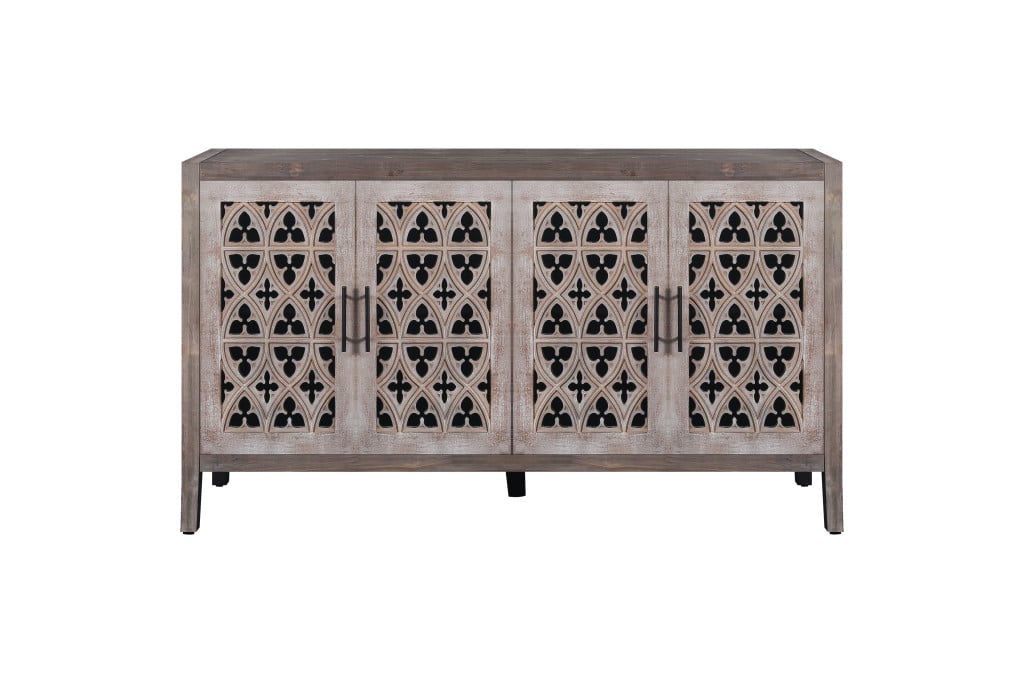 63″ Brown Distressed Carved Scrollwork Sideboard with Four Doors