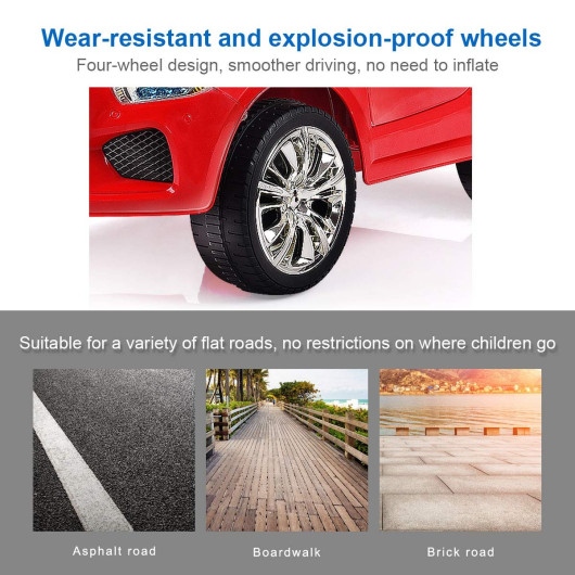 - Multi-function: Equipped with Mp3 & USB & TF input and the headlights and horn are also functional. Your baby can open the door of this ride on car for easy get on and off. An ideal present for your baby!