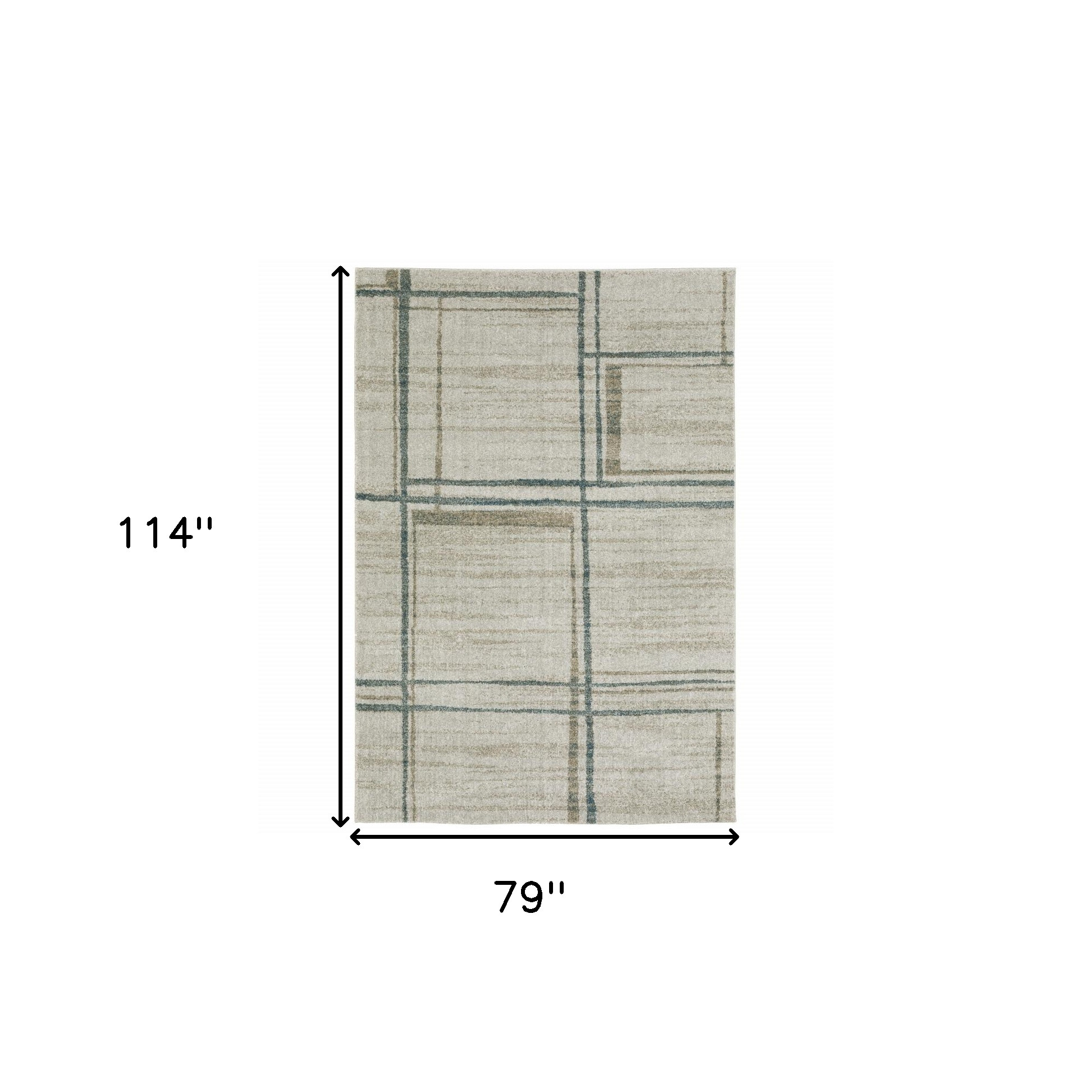 7′ X 10′ Grey Teal Beige And Tan Geometric Power Loom Area Rug