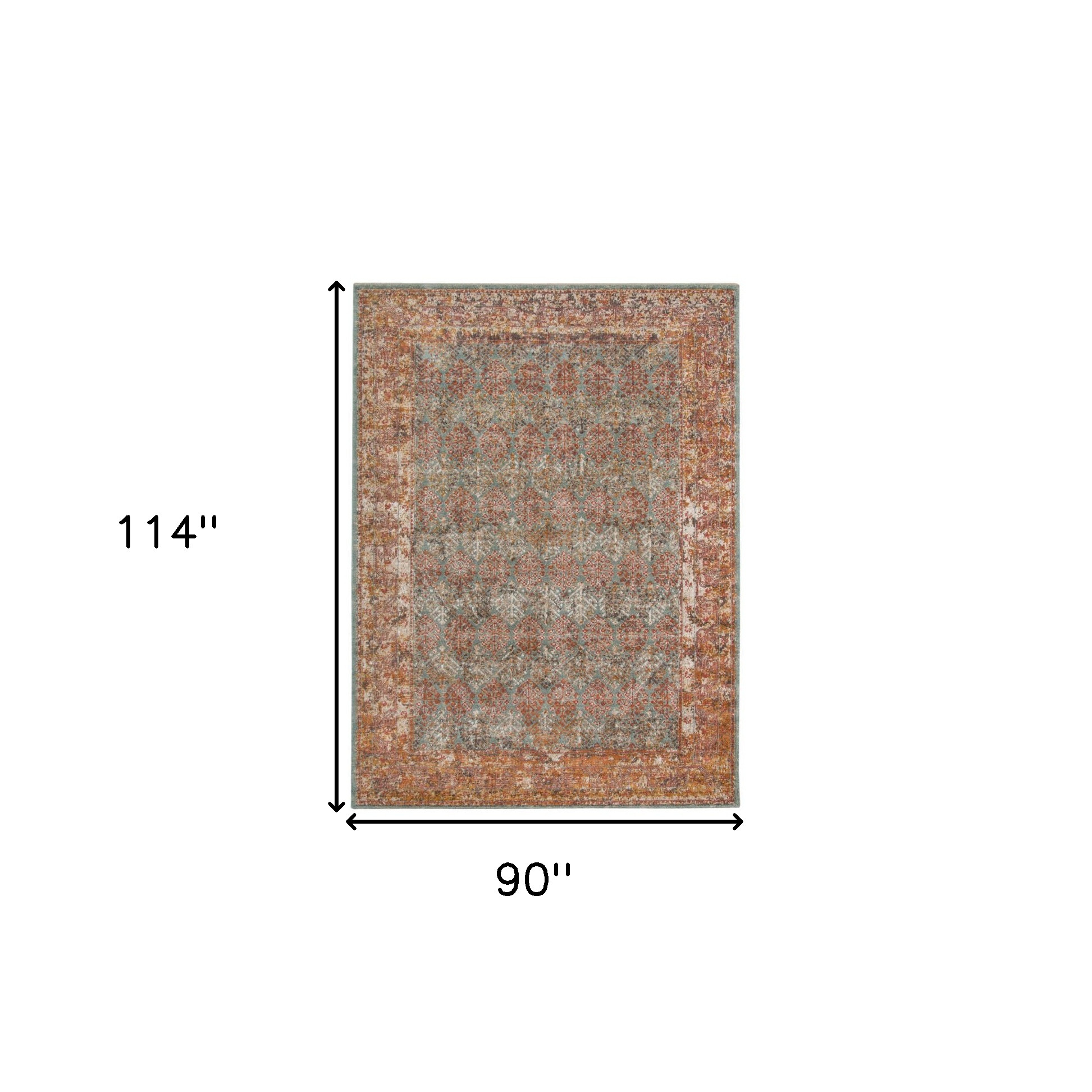 7′ x 9′ Teal Southwestern Power Loom Area Rug With Fringe